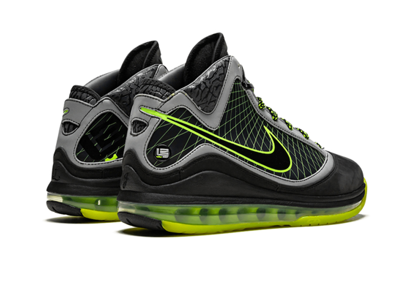 这双鞋整体以黑、灰、绿三色构成,侧身以醒目的黑绿放射状线装饰,荧光色调 Swoosh Logo 搭配波点鞋带点缀,撞色气质非常抢眼。