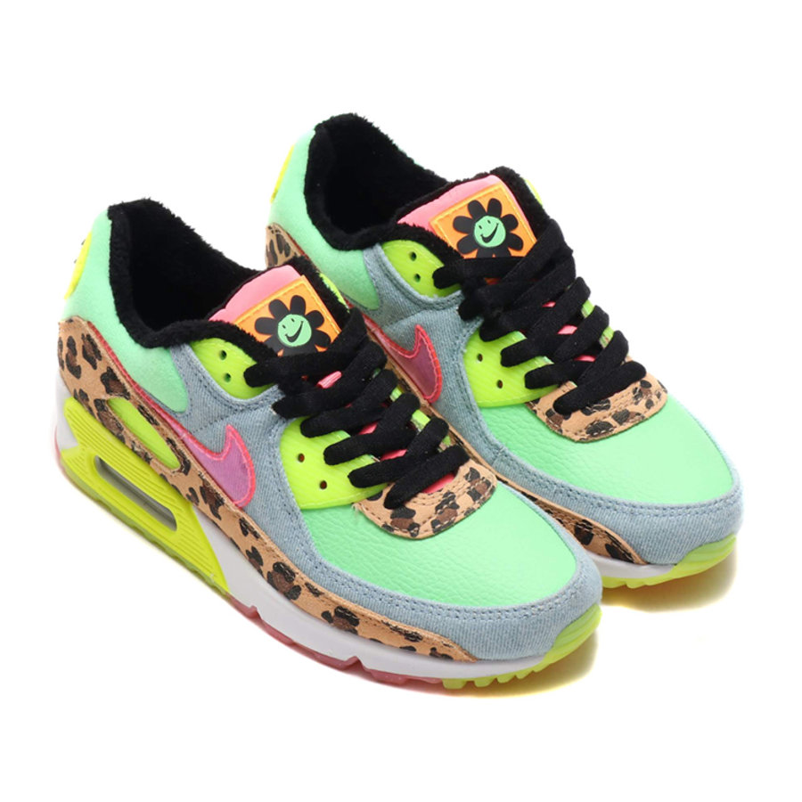 另外一款鞋面采用浅绿色、灰色拼接打造,侧身搭配粉色 Nike Swoosh Logo,带来极为清新的视觉效果。侧身辅以狂野豹纹图案,可爱气质中透露出不少狂野气氛。