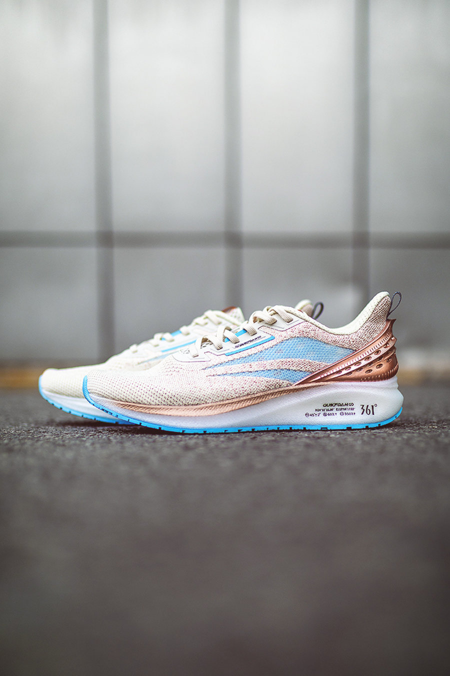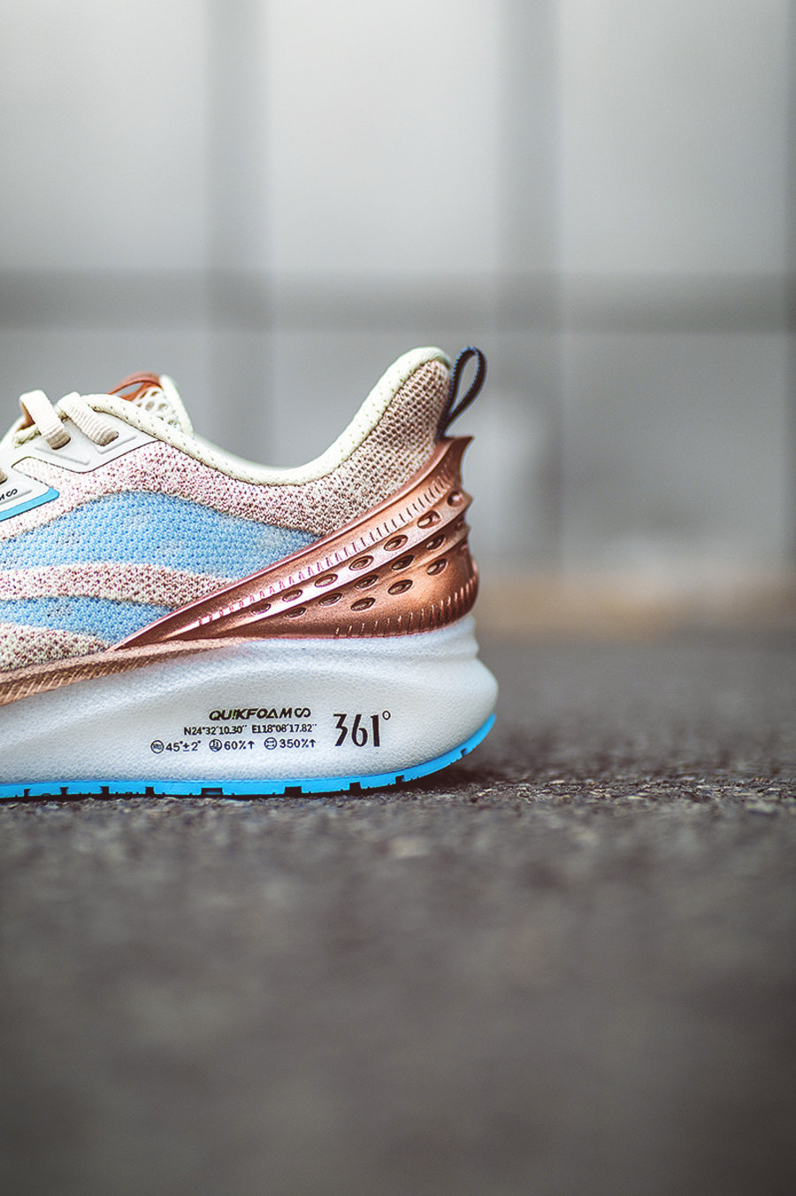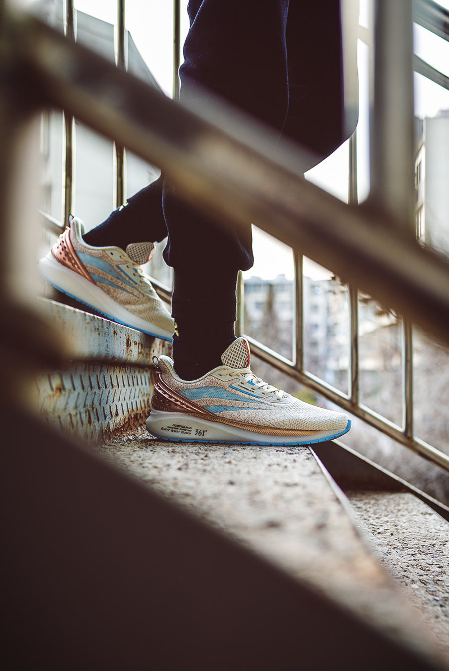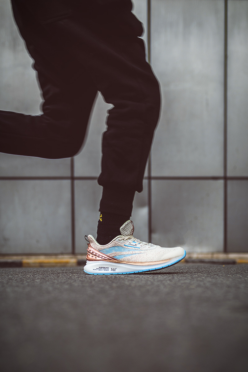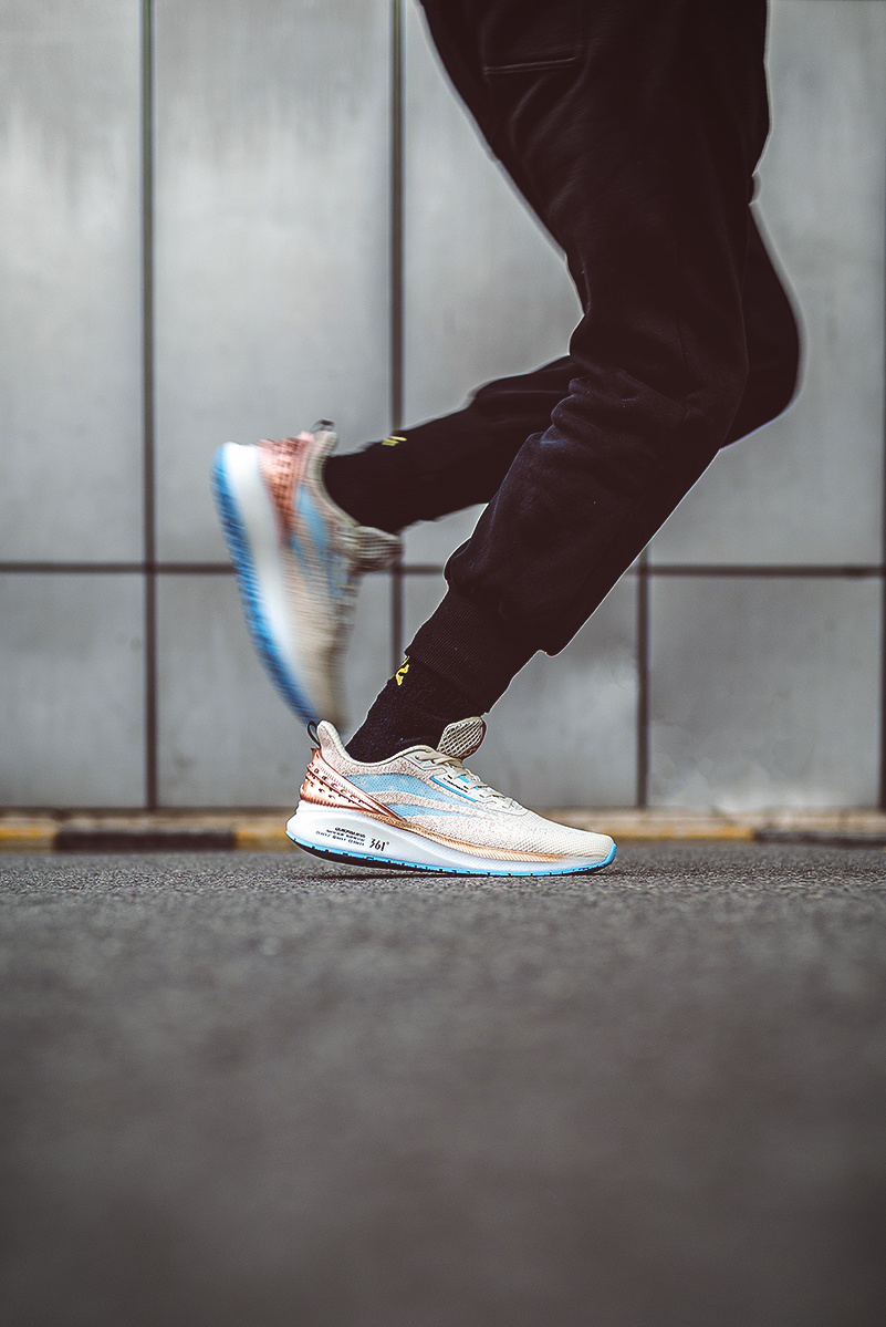 这双鞋是由 361°「Q³ 科技平台」推出的 Q 弹超跑鞋。