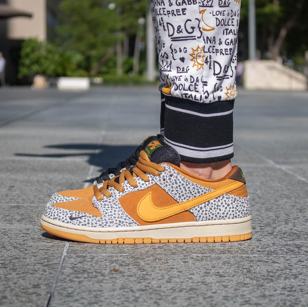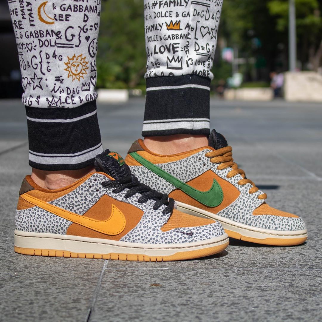 而此前多次曝光的 Nike SB Dunk Low “Safari” 也在今早曝出最新上脚图,一起看看吧!