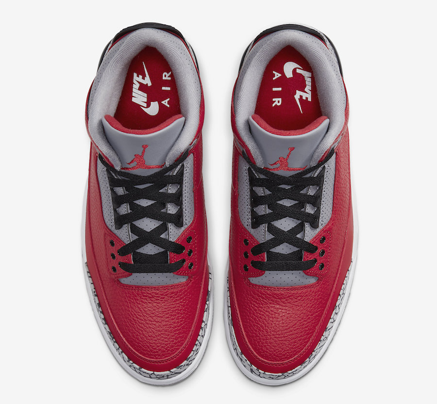 红水泥配色 Air Jordan 3 SE “Red Cement” 将芝加哥公牛标志性的黑红配色同经典的水泥装扮融合,保留了灰色鞋舌和爆裂纹元素,带来一双鲜艳醒目的新作。