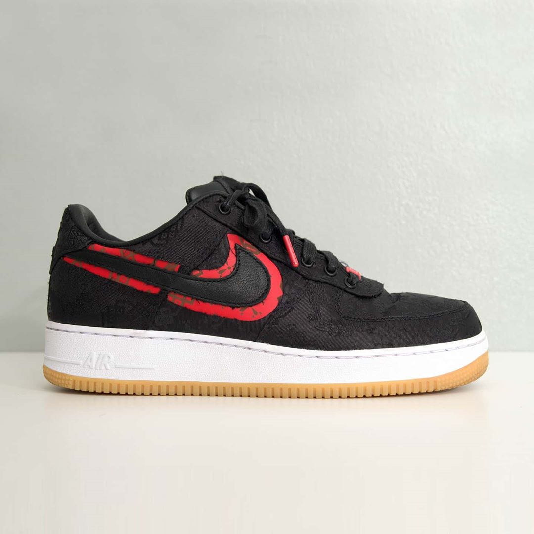 CLOT 的丝绸主题是近半年来球鞋圈最具人气的话题,其中同 fragment design 打造的三方联名黑丝绸,不仅有着「闪电」的加持,黑色丝绸面料和红色皮革内里的搭配,也让它的可玩性和颜值飙升!