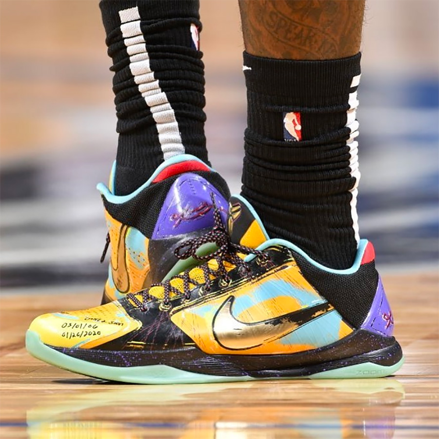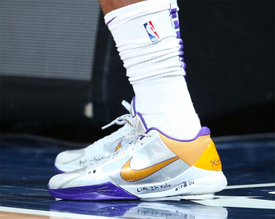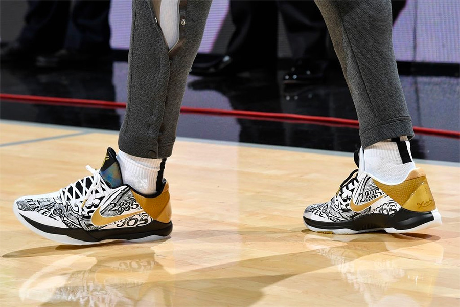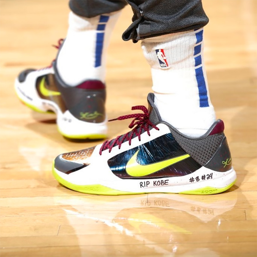 在 NBA 赛场,球员们以 Kobe 战靴和在球鞋上书写悼念文字,表达哀思。