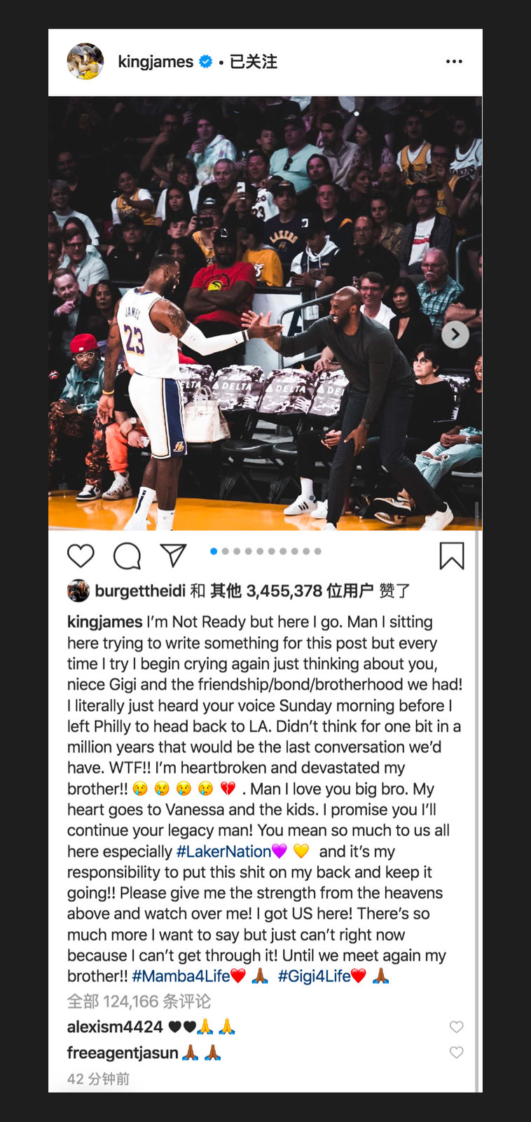 得知科比离世消息后痛哭流涕的詹姆斯,迟迟没有在社交网络上发声。