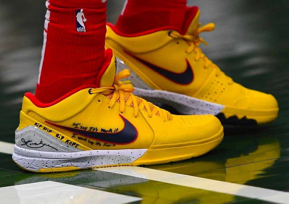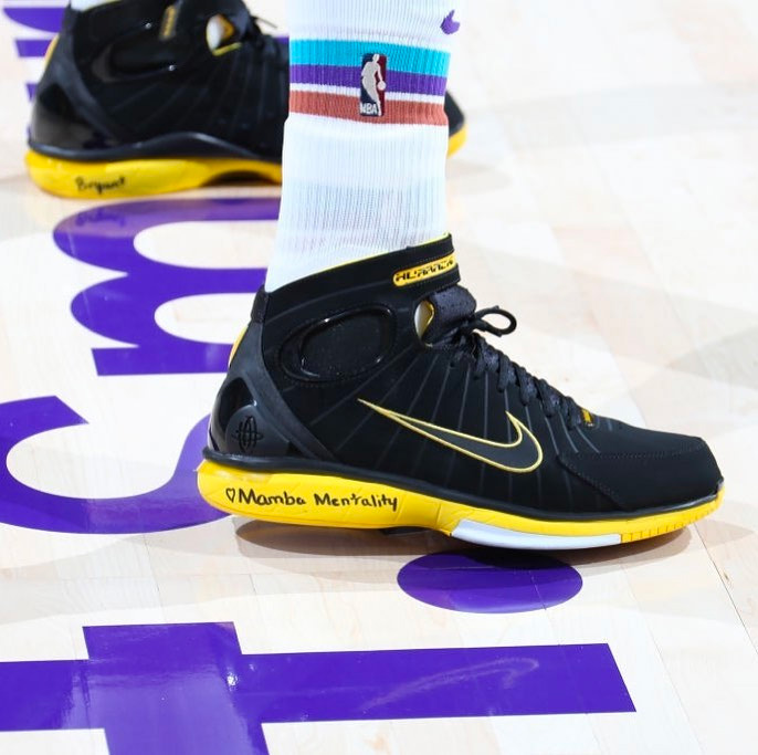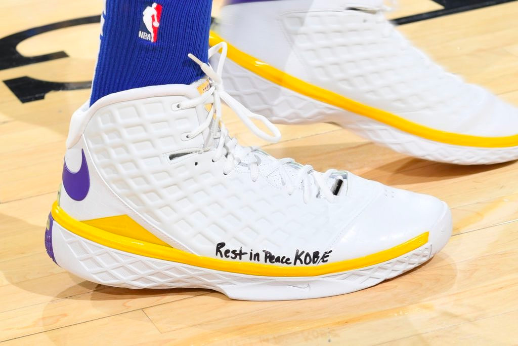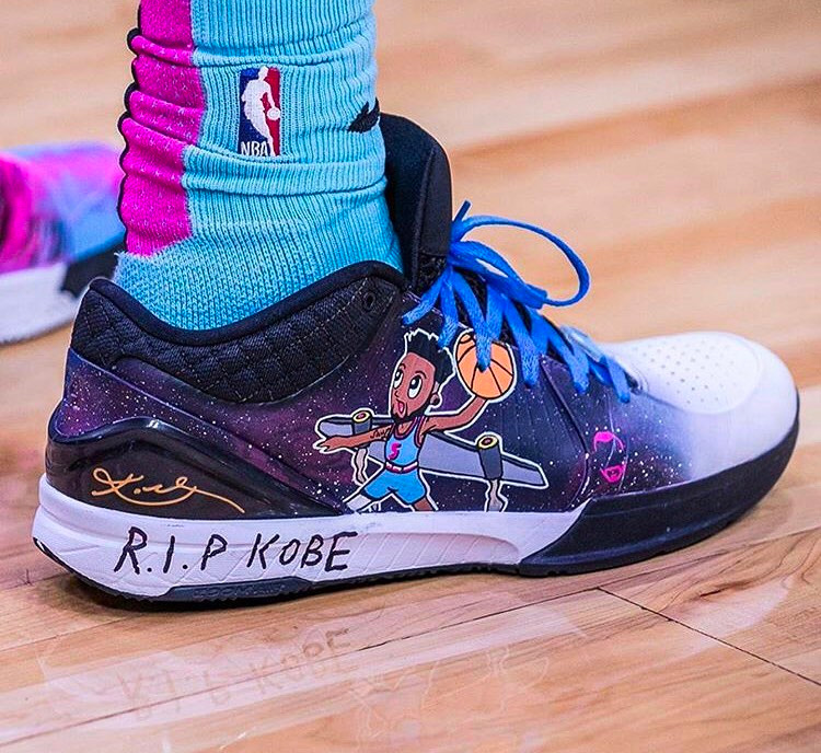 而在 NBA 赛场上,球员们继续通过球鞋表达对于科比的怀念之情。