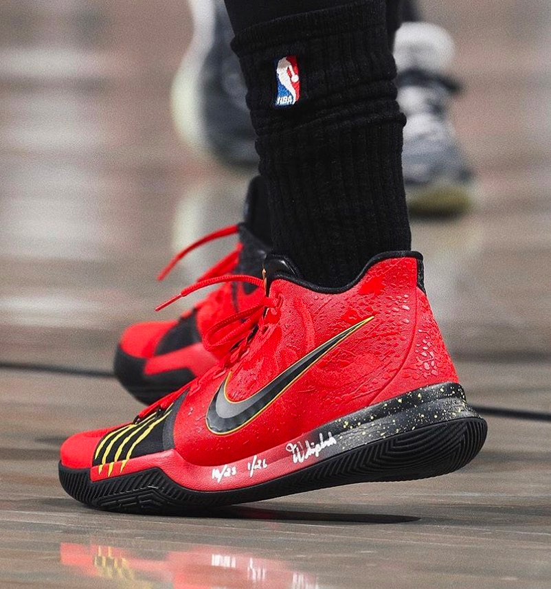 在今天篮网对阵雄鹿的比赛中,欧文上脚了 Nike Kyrie 3 “Bruce Lee” 李小龙配色,此款配色也是致敬科比战靴 Kobe 5 “Bruce Lee” 的特别主题。