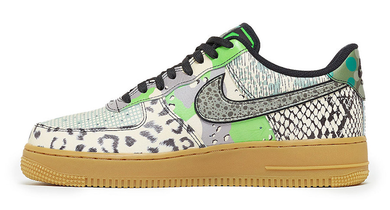 此次曝光的全新配色,在设计上与此前的墨绿色配色保持一致,鞋面花纹极其丰富:涵盖蛇纹、豹纹、迷彩、网格以及波点等元素。