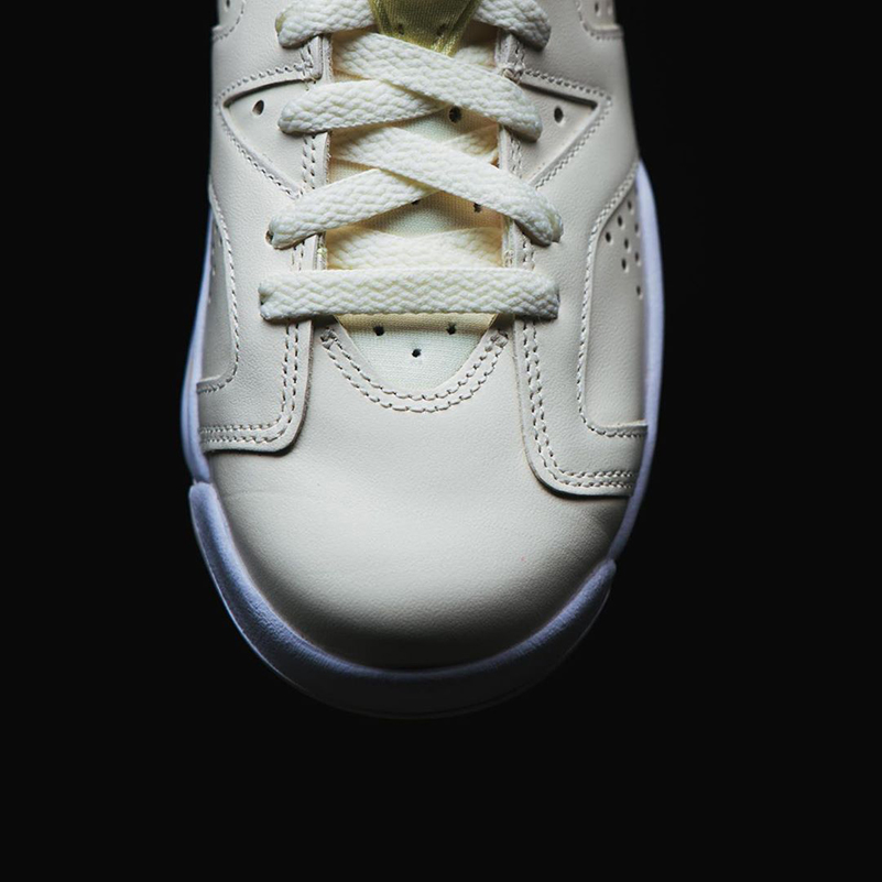 整双鞋在 Air Jordan 6 挺拔的鞋身造型上以一袭清新的柠檬黄色示人,白色中底上同样勾勒带有黄色色带。
