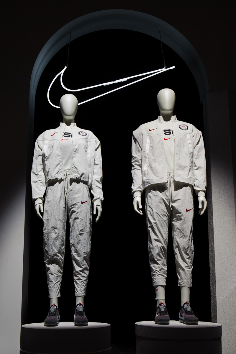 作为本次 2020 东京奥运会运动员领奖用鞋,Nike 还一并发布了相关配套领奖服饰。