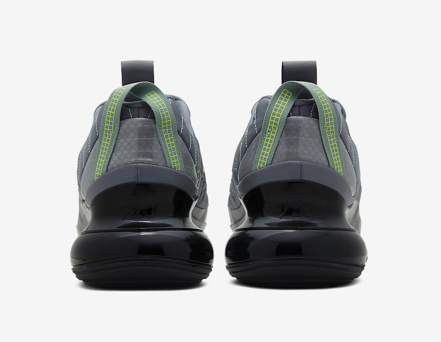 在经典的 Neon 配色加持下,黑、灰、绿三色覆盖的鞋身,营造出强烈的未来科幻感。