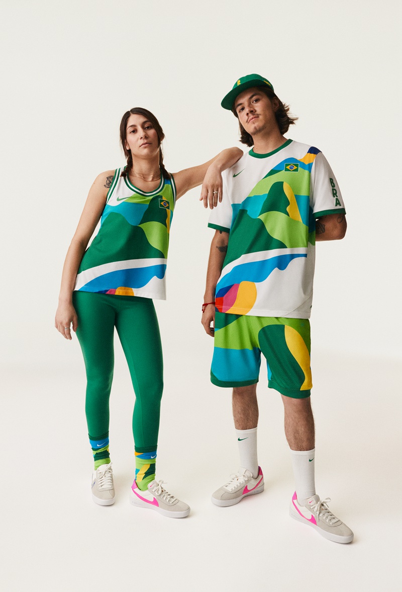滑板作为奥运的新晋比赛项目,Nike 打造的滑板系列将通过大量回收聚酯纤维制作、具有色彩斑斓图案的比赛服装。