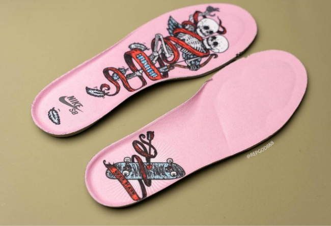 鞋垫内部别有洞天,左右两脚分别带有不同的涂鸦装饰,相拥的骷髅可谓是玩味十足!