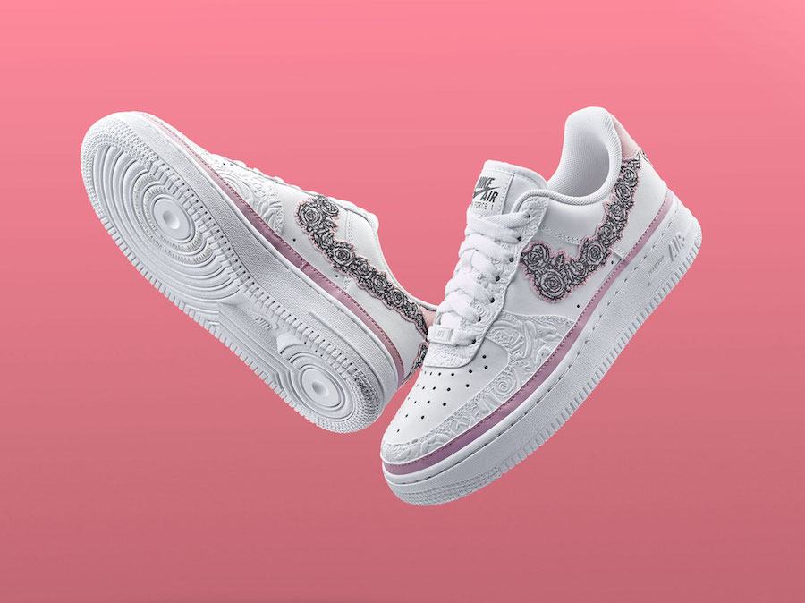 最经典的纯白色 Air Force 1 造型,融入大量花卉进行点缀,以此纪念 Zion 小朋友治疗癌症的过程。