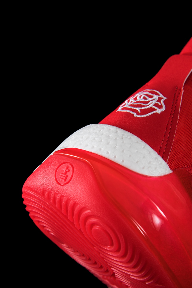 细节方面,鞋面 Logo 以玫瑰图案点缀,后跟也有玫瑰刺绣,彰显玫瑰之城主题。
