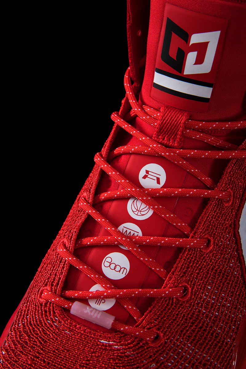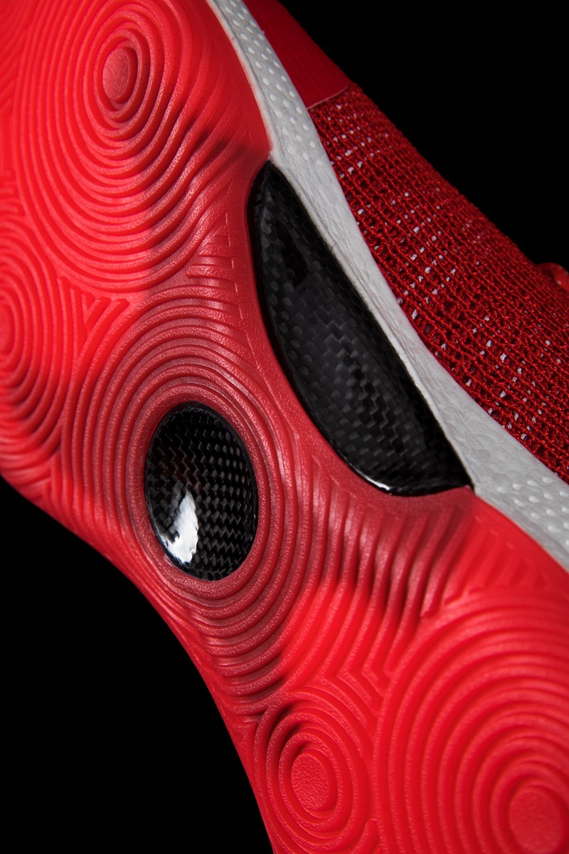 以大红色为主色调,鞋面 Logo 和中底等细节则以白色点缀,华丽又不失清爽。