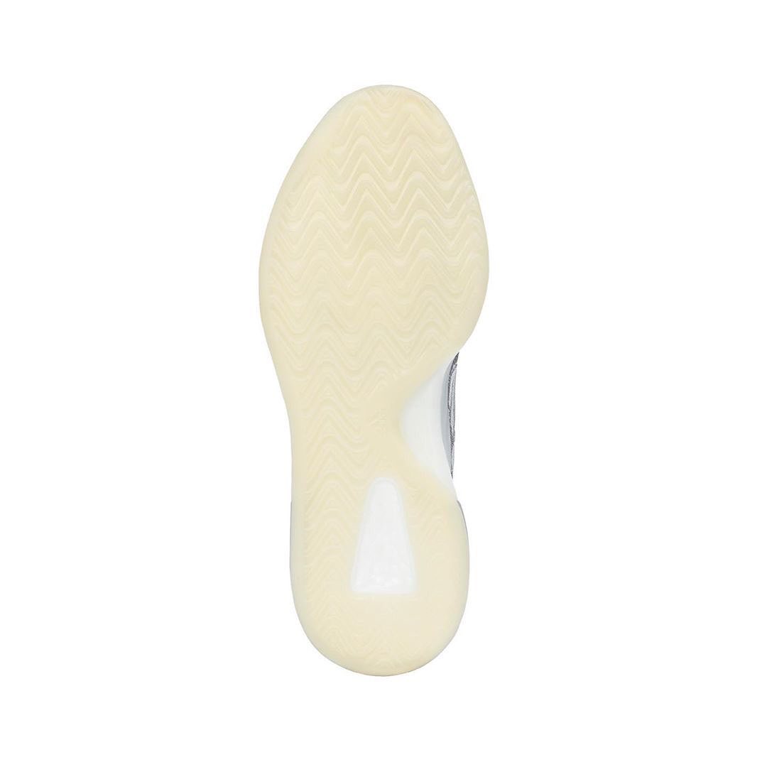 米灰色鞋头、灰白双色鞋身、黑色鞋帮后跟,外加乳白色中底。