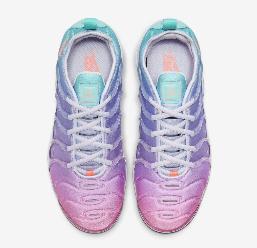 将经典复古鞋款 Air Max Plus 与前卫造型的 Air VaporMax 合二为一的 Nike Vapormax Plus,问世后便有不错的人气,配色也是层出不穷。 近日 Nike 为其带来了一双极为醒目的南海岸配色,一起看看吧! 蓝、绿、粉三色渐变装扮的鞋身,组成球鞋圈人气极高的南海岸配色,搭配可视窗的全掌缓震,整体气质格外清新吸睛。 这双鞋将于近期正式发售,发售价格为 $190 美元,喜欢的朋友可以通过货号 CW5593-700 多加查询了解!
