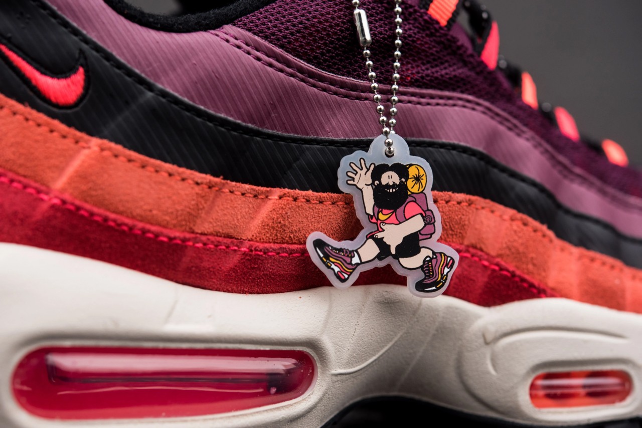 不仅如此,这双鞋还带有 ACG 标志性的 “Hike Man”挂坠,卡通人物脚上穿的正是这款配色。