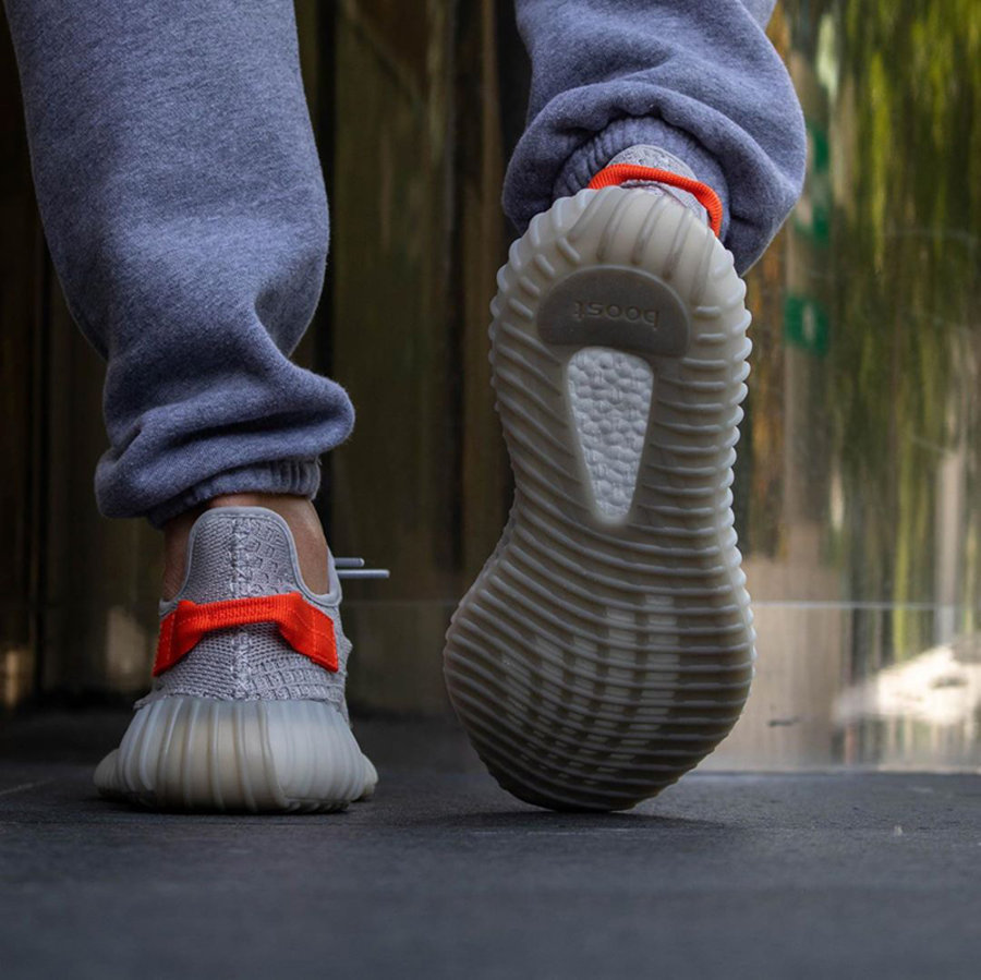 在 adidas Yeezy Boost 350 V2 鞋型上,雾霾灰色覆盖鞋面,中底也以相同配色呈现,半透明设计更显整双鞋的高级感。