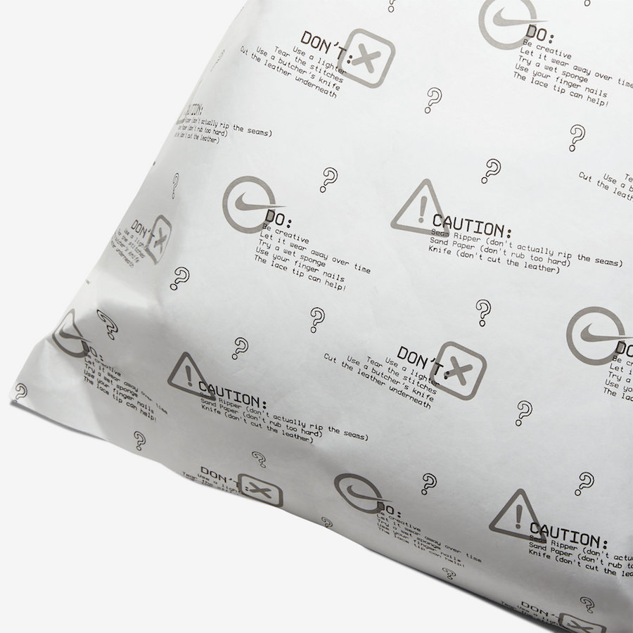 侧身 Nike Swoosh Logo 上也带有虚线以及剪刀图案。