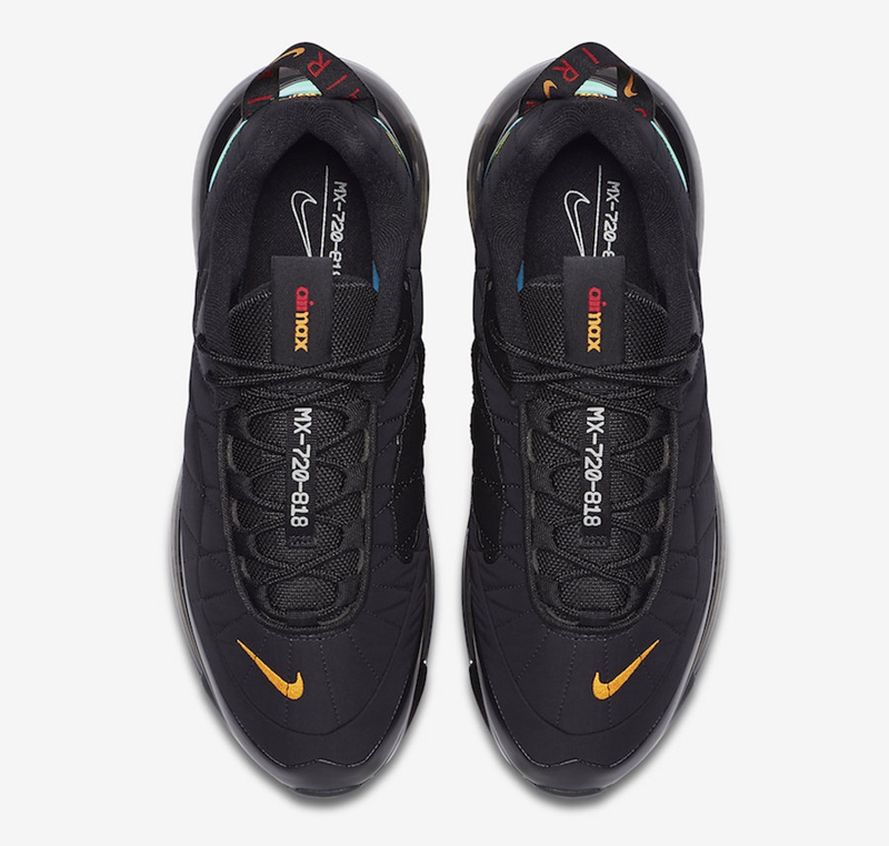细节注入橘黄色点缀鞋头 Swoosh 及后跟鞋提,气垫印有 MX-720-818 彰显独特身份!
