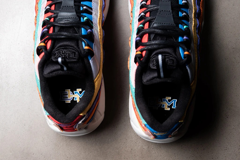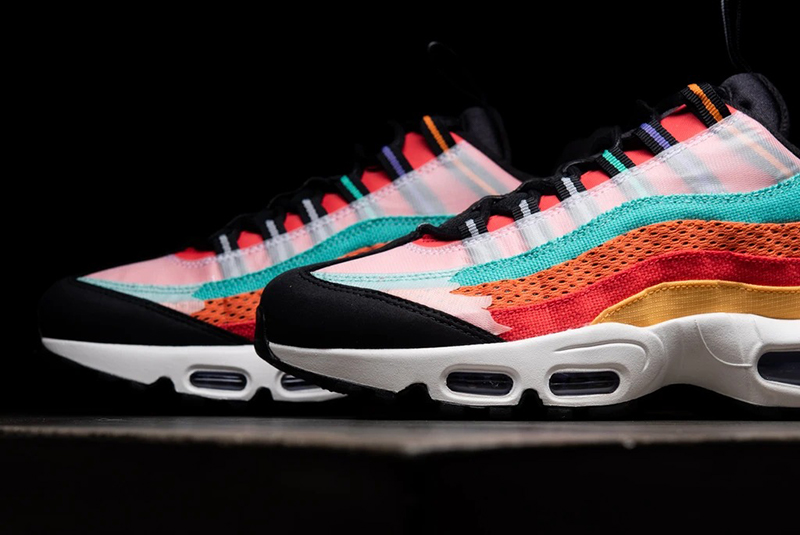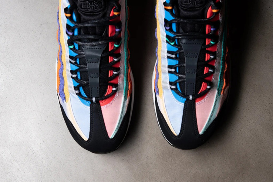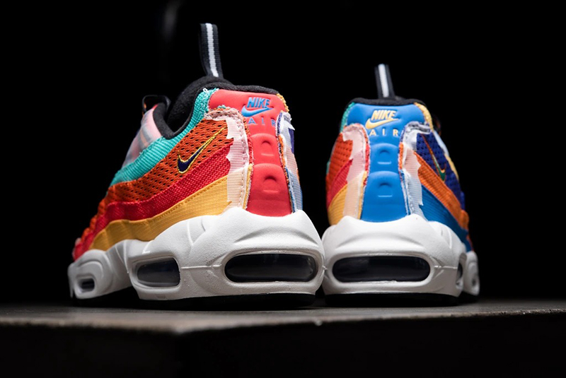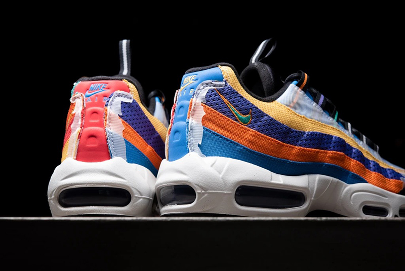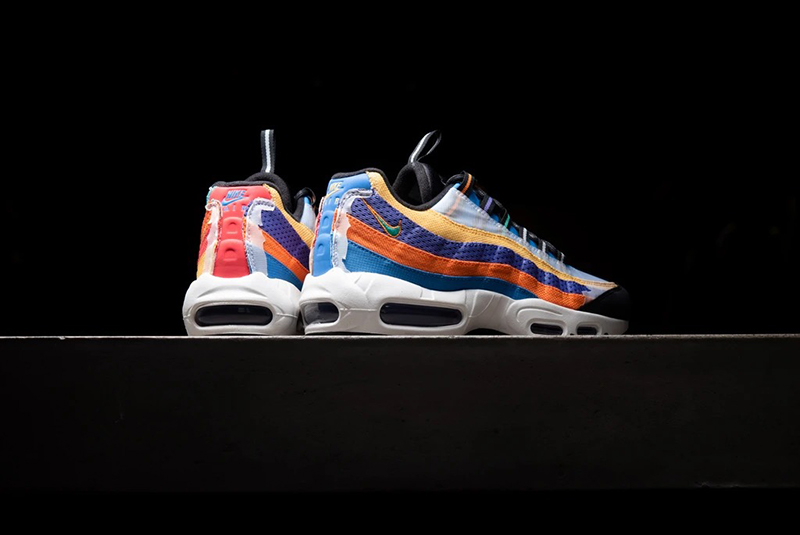 整双鞋以 Air Max 95 鞋型为设计蓝本,鞋身涵盖蓝色、橙色、紫色、黄色以及白色等多种色彩。