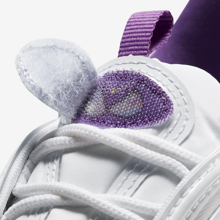 鞋面还加入彩虹全息装饰,魔术贴鞋舌外层为 Swoosg Logo,撕开则可以看到和鞋垫印有相同的彩蛋 Logo。