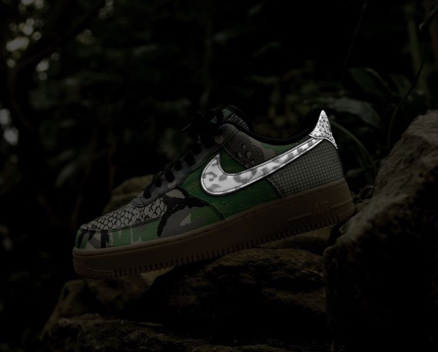 整双鞋鞋面花纹极其丰富:涵盖蛇纹、豹纹、迷彩、网格以及波点等元素。