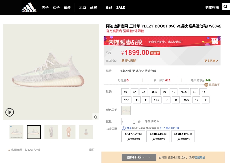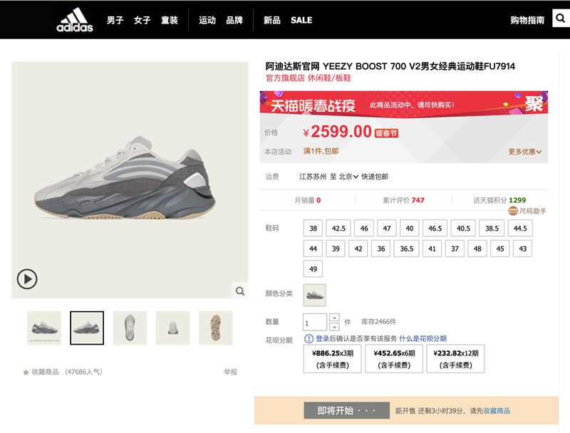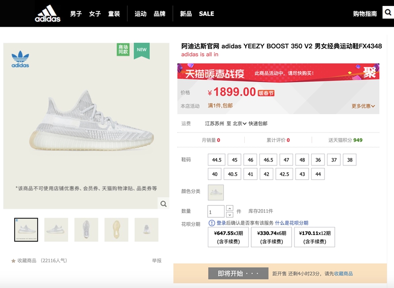 此前我们就已报道过,adidas 天猫旗舰店将于 2 月 21 日 0 点针对 Yeezy 系列鞋款进行补货!
