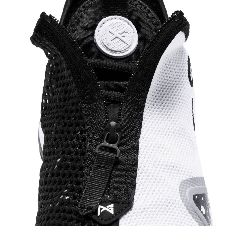 鞋面以白色为主色调,鞋面内侧的网眼材质为黑色,形成了外白内黑的阴阳效果,令黑白装扮更具看点。