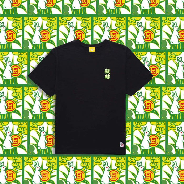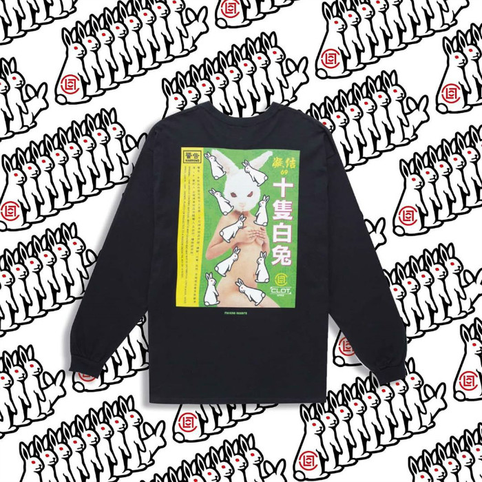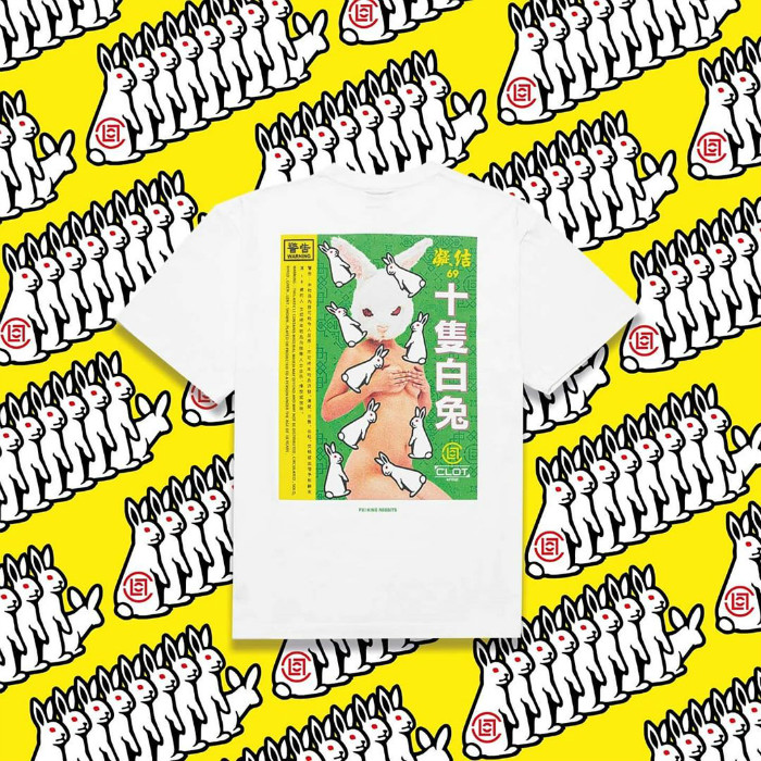 涵盖 T恤、长袖、连帽卫衣、帽子及手提包等,通过挑逗性的兔子元素与 CLOT 凝结集团 Logo 相融合,黄、绿对撞的经典柠檬茶色调,更是亲切又极具玩味!