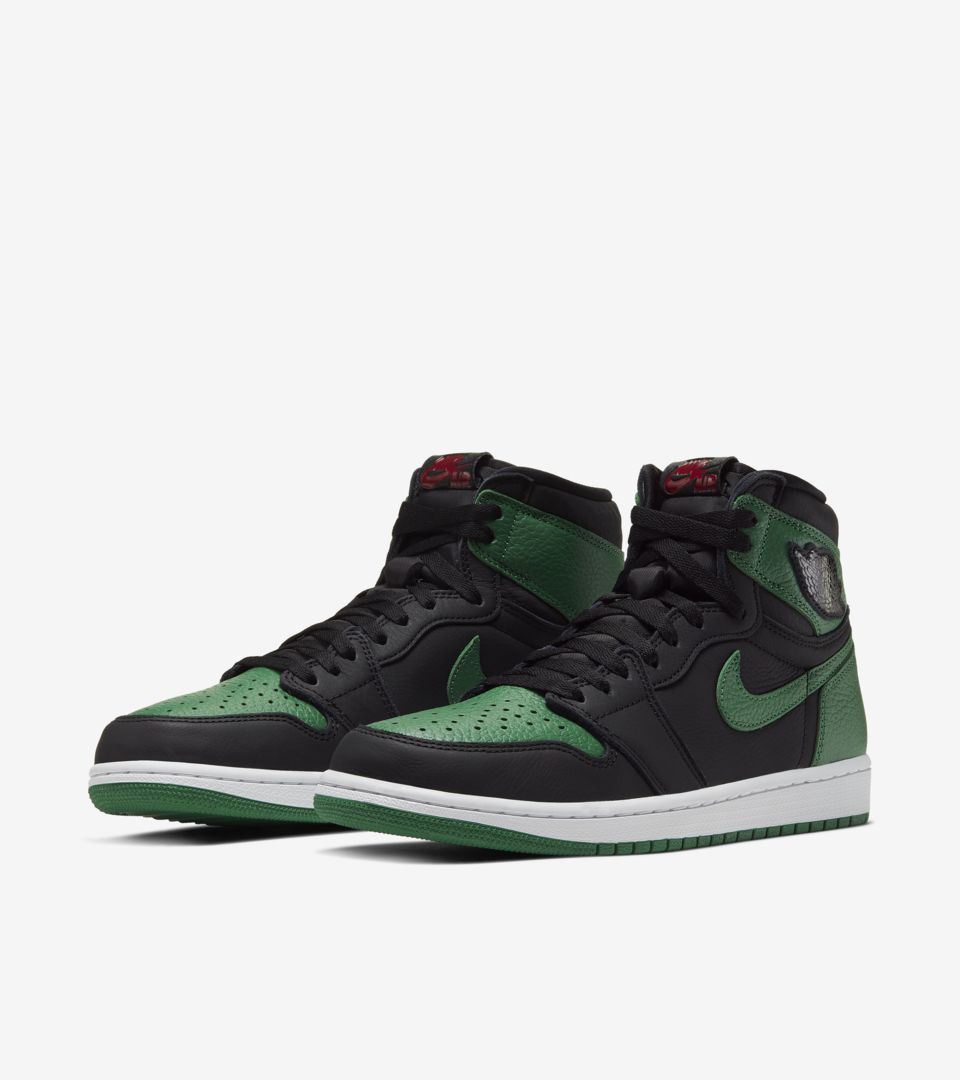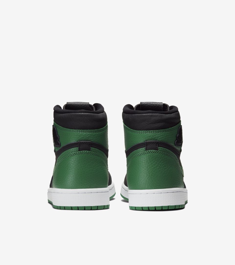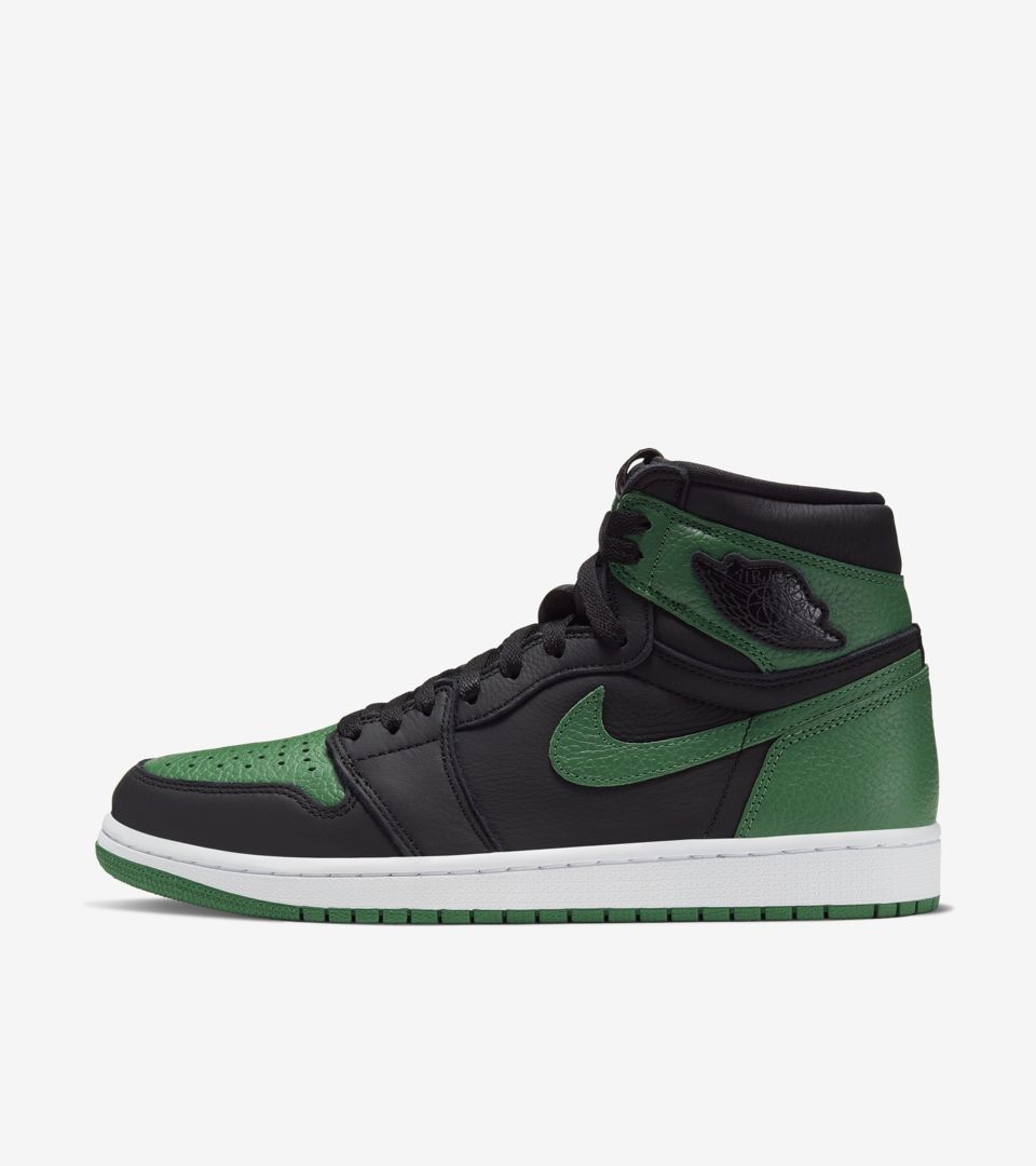 以最经典黑红 Air Jordan 1 的配色方案为原型,将红色替换为绿色带来全新视觉感受。