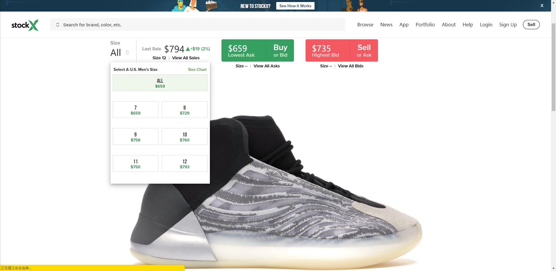 目前这款生活版的 YZY QNTM Quantum 市场行情,海外球鞋交易平台 StockX 显示成交价格在 $700-$800 美元左右,相当于 ¥5000-¥6000 人民币,着实不便宜。