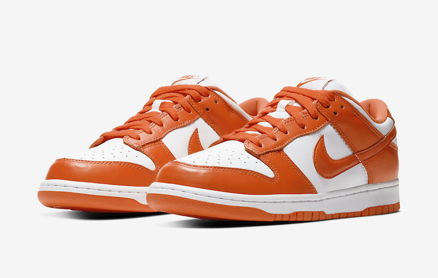 延续 Dunk Low 的经典造型,白橙装扮代表雪城大学(甜瓜的母校)的配色方案,富有光泽感的优质皮革,上脚效果想必十分优秀!