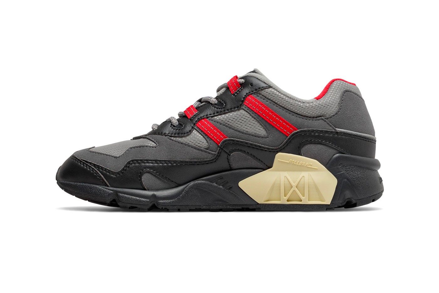 全新配色以黑色和深灰色为主调,鞋带固定与后跟 Logo 加入红色点缀,相比 New Balance 家族中的其他成员,外观显得格外独特。