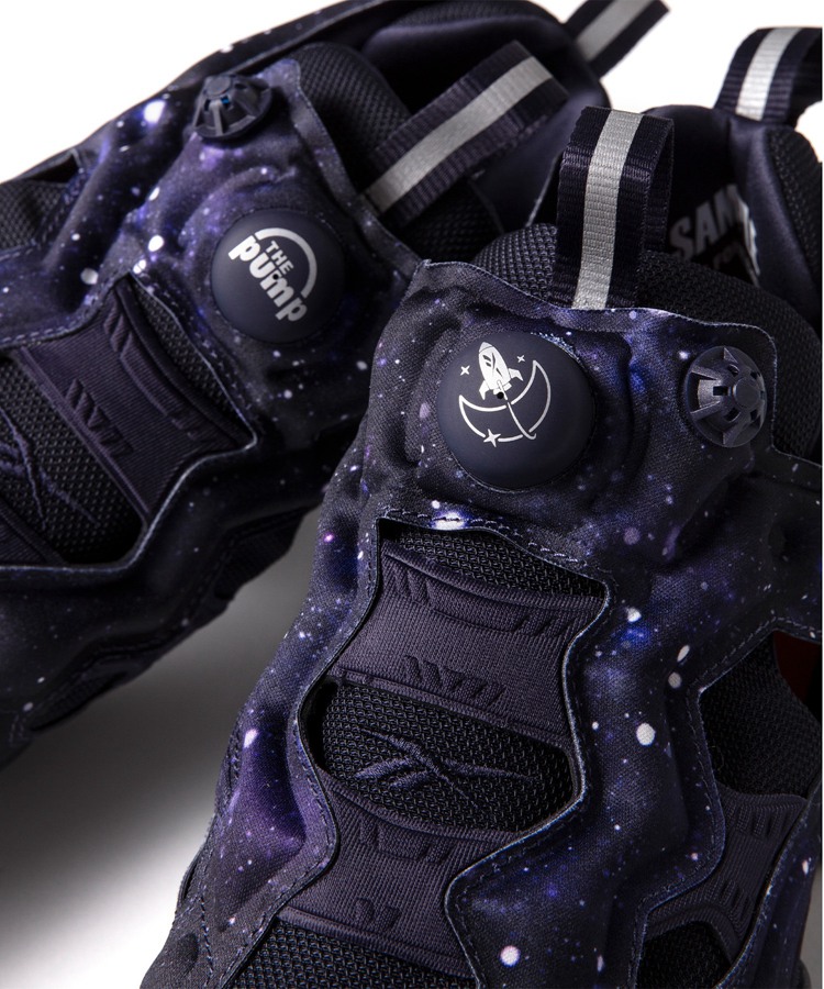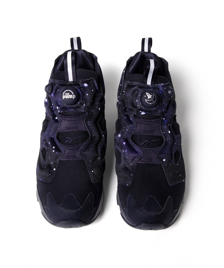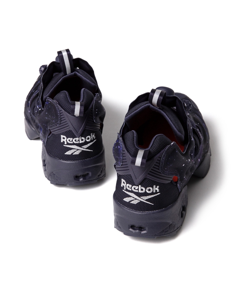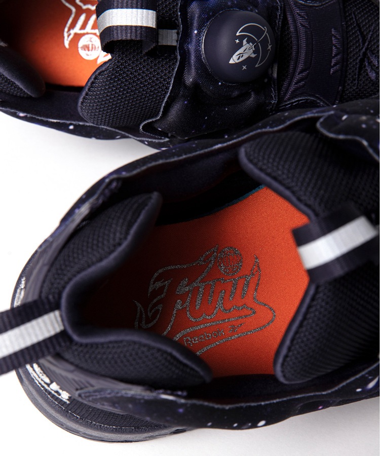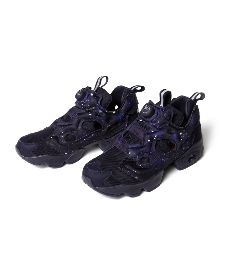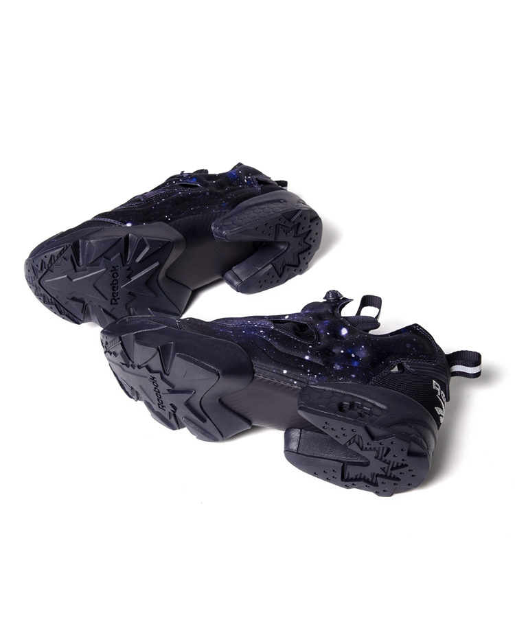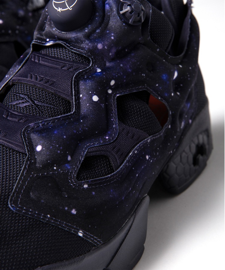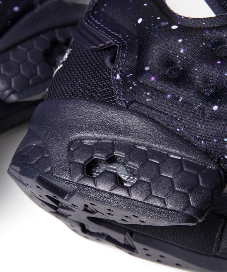 鞋身采用象征神秘太空的藏蓝与黑色打底,繁星点缀的星空图案覆盖 Instapump Fury 标志性的充气鞋面。