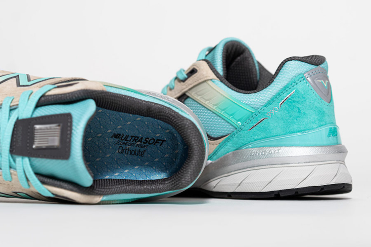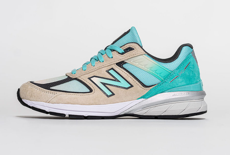 整双鞋的设计灵感源自美国的退税支票,在 990v5 的鞋型基础上采用米白色与蒂芙尼绿色覆盖。
