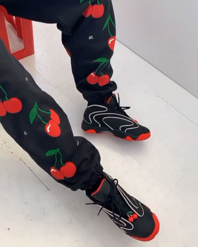 最大亮点毫无疑问当属鞋头位置的樱桃图案,同时后跟位置红色 Jumpman Logo 下方的「ME.」标志,彰显联名身份。