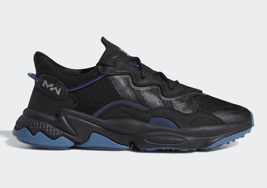 鞋款选择 adidas Ozweego 为原型,纯黑色的基础上在细节中加入午夜蓝色点缀,后跟处点缀有《使命召唤》现代战争系列中的 “MW” Logo,低调又有独特质感。