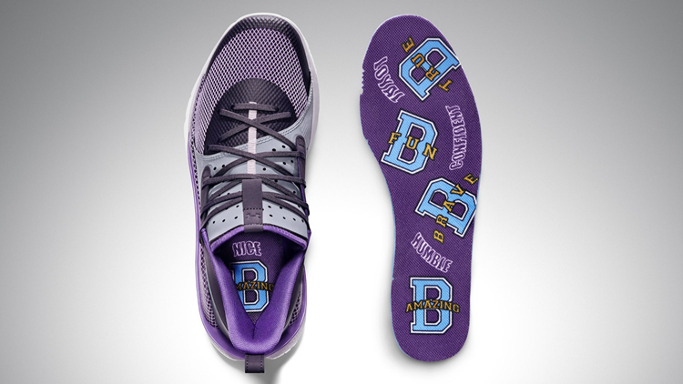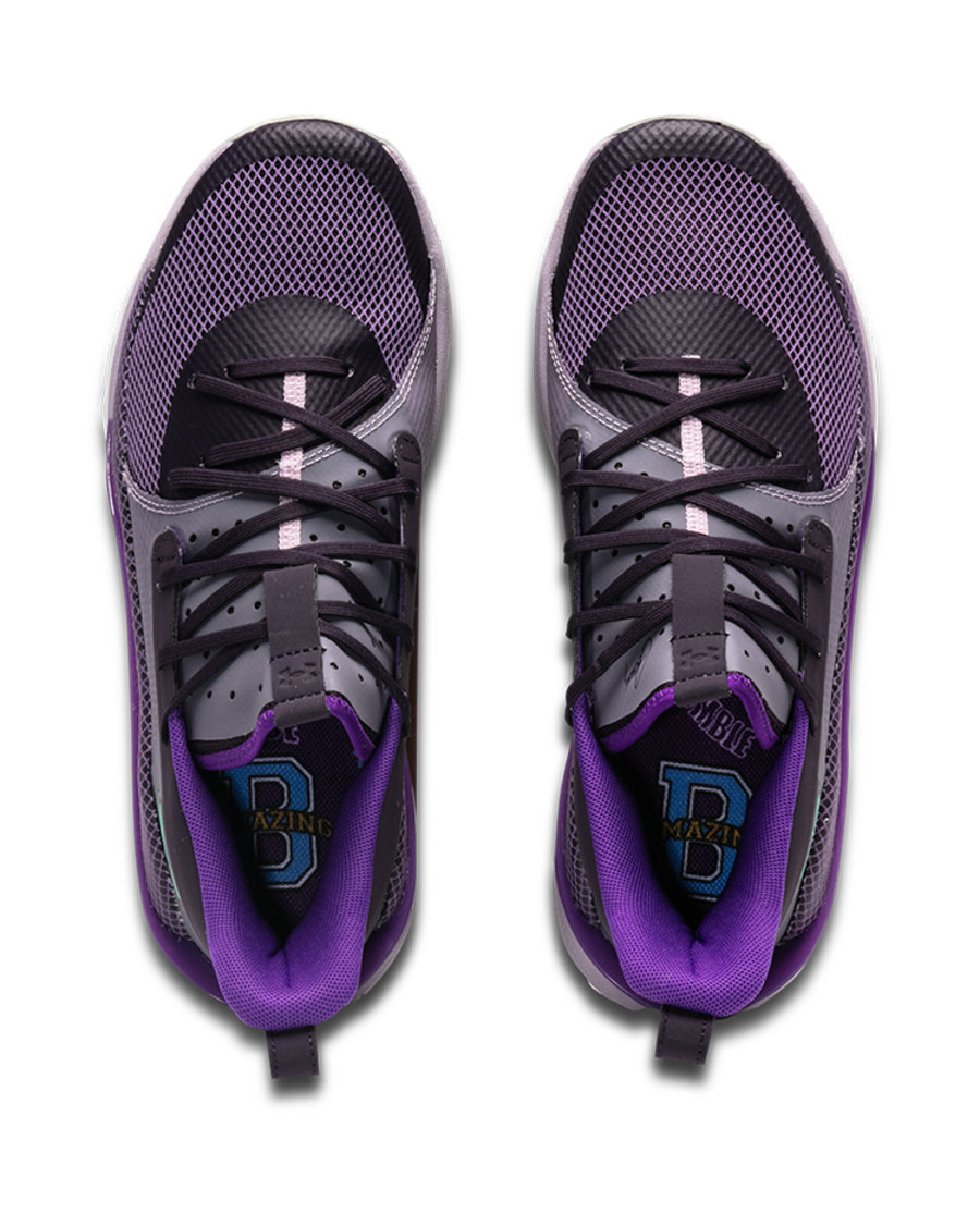 以深浅不一的紫色打造鞋身,鞋垫上的 “B AMAZING” 和 “HUMBLE” 字样,彰显本次配色的特别身份。