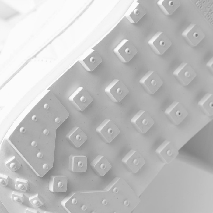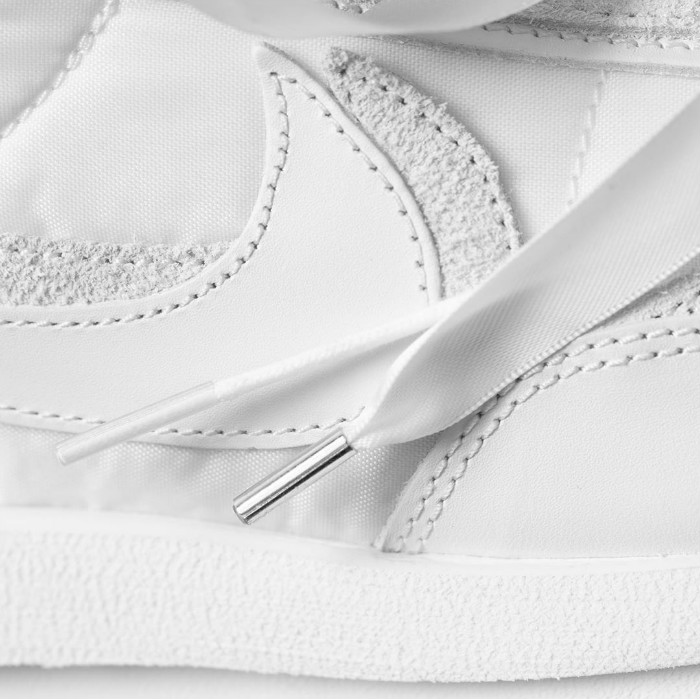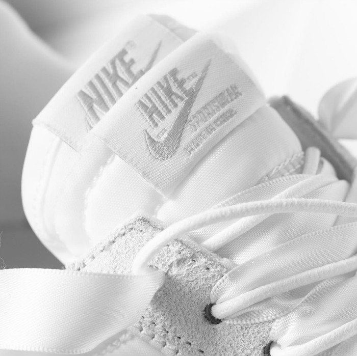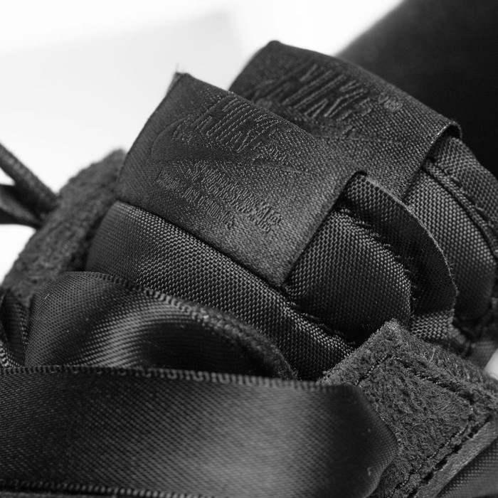 不同于此前近乎透视的网眼鞋面,本次采用翻毛皮革与绸缎质感的尼龙面料共同构建鞋身,鞋带则采用全新的宽边设计。