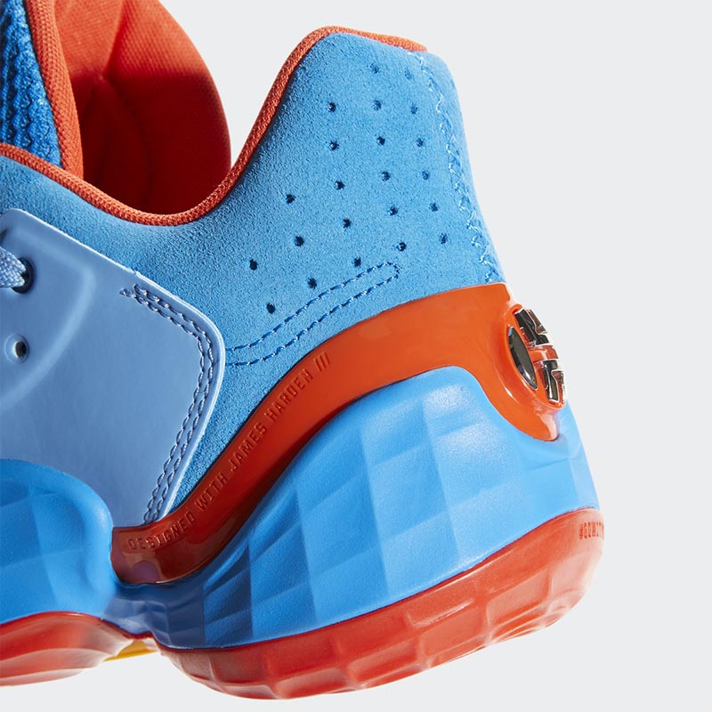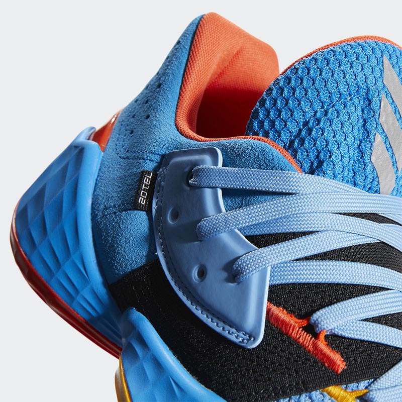 鞋身采用亮蓝与橘黄对撞,外底则辅以蓝、黄、红拼接示人,整体醒目不凡,轻松成为球场上的瞩目焦点!