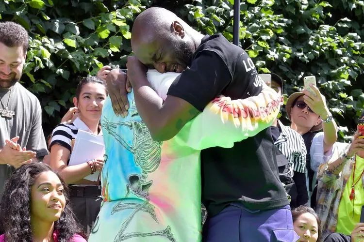 ▼ Virgil Abloh 在自己的 LV 首秀中与 Kanye West 的相拥而泣