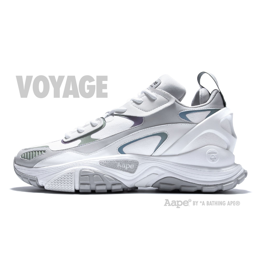 AAPE VOYAGE 为 AAPE 主线系列的时尚鞋款,名称「VOYAGE」带有远行和旅程含义,旨在突显缓慢的节奏感,更易搭配不同类型风格的服饰。