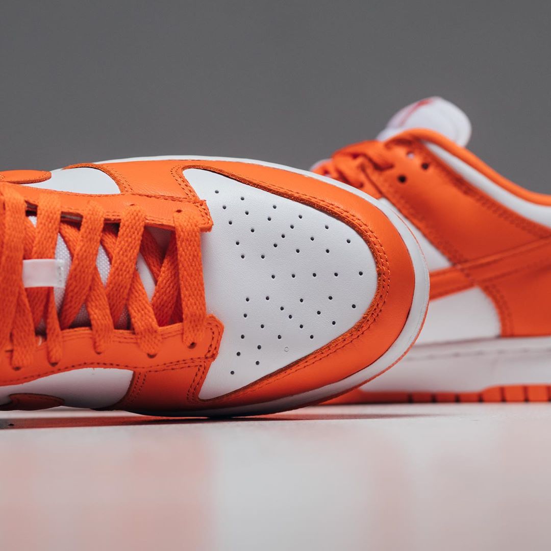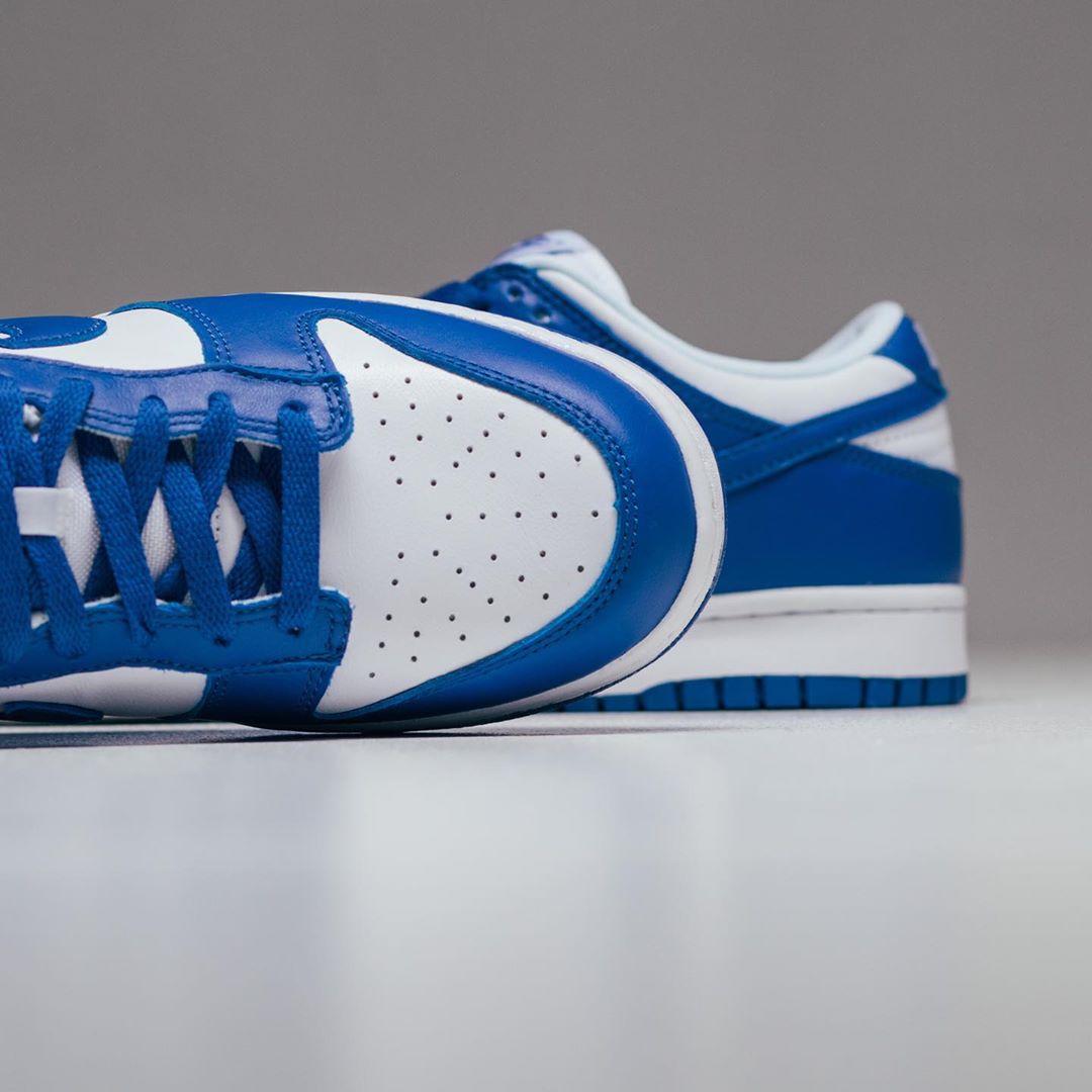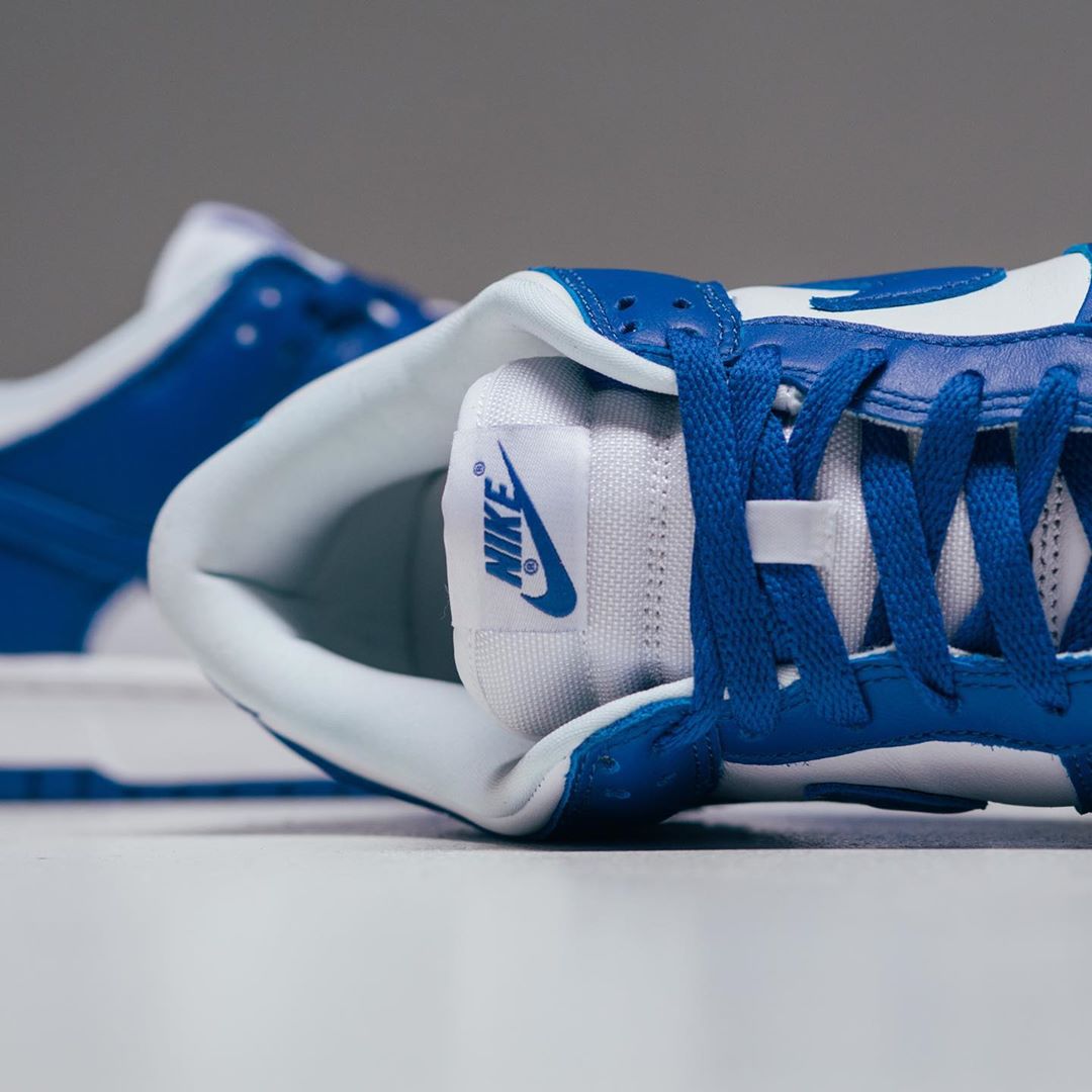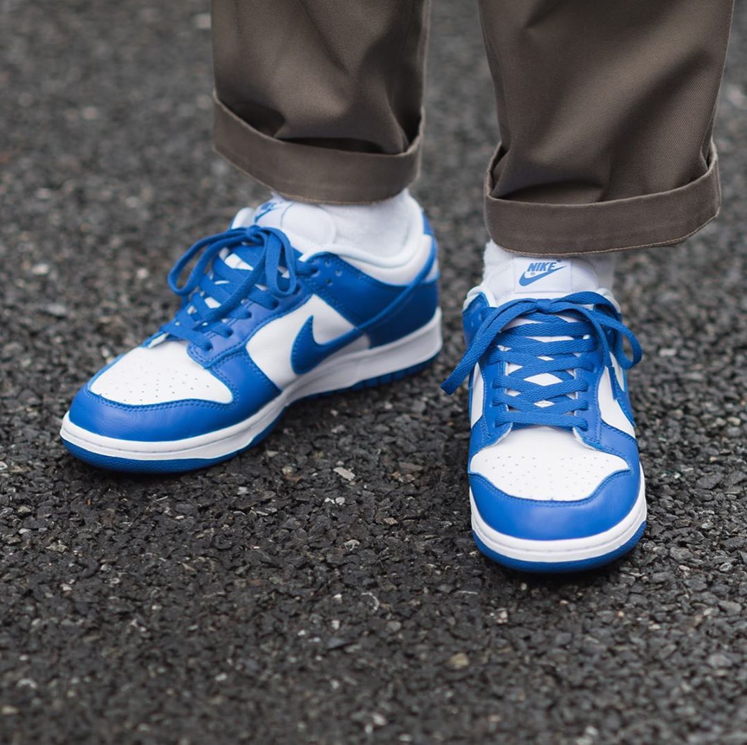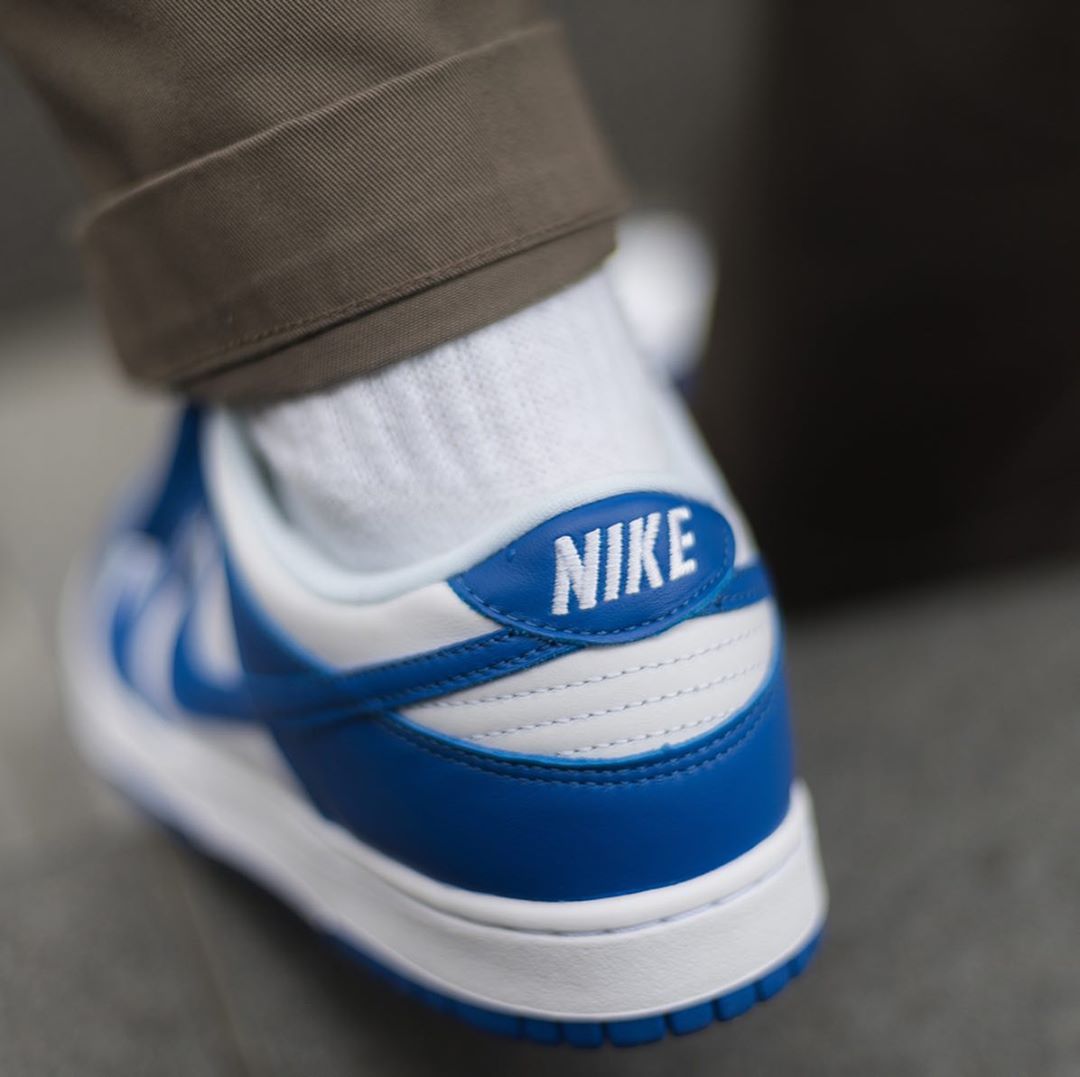 不同于 OG 元年的高帮款式,这次的复刻采用了更为灵巧的低帮鞋型,两双 Nike Dunk Low 都是简约明快的双色搭配,白蓝和白橙都有不俗的活力效果。