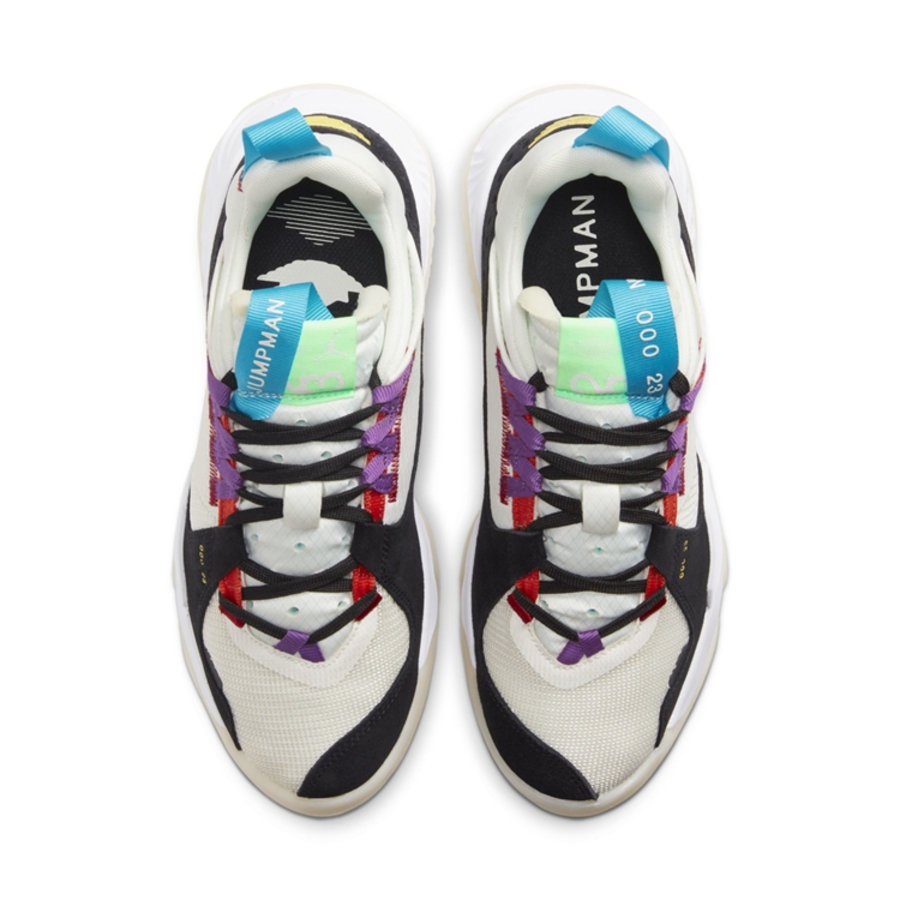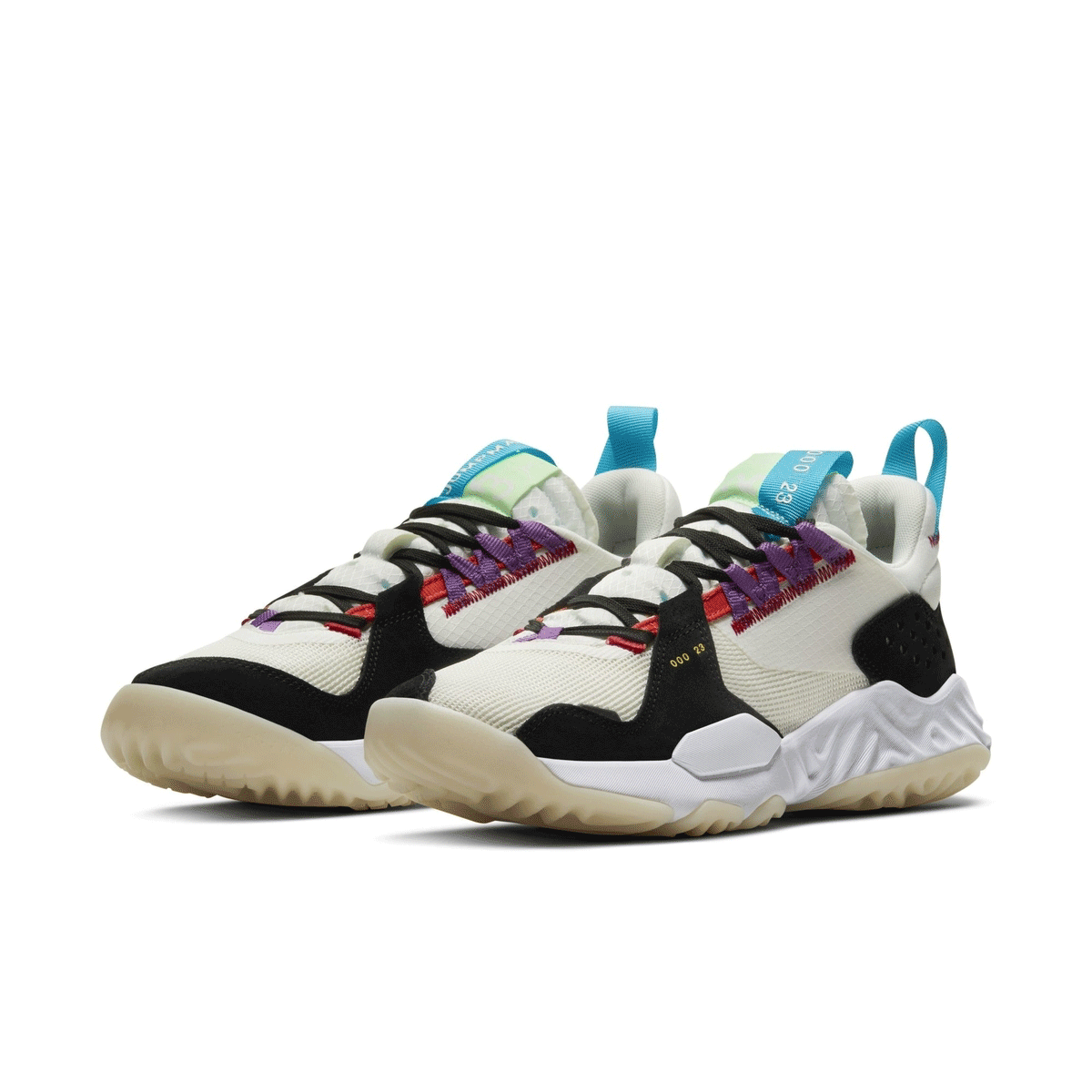 鞋头侧边补强上可以看到压印的 000 23 字样,同时左、右脚鞋舌提环上分别呈现 JUMPMAN 与 000 23 字样,这一点与冠希晒出的实物略有不同。