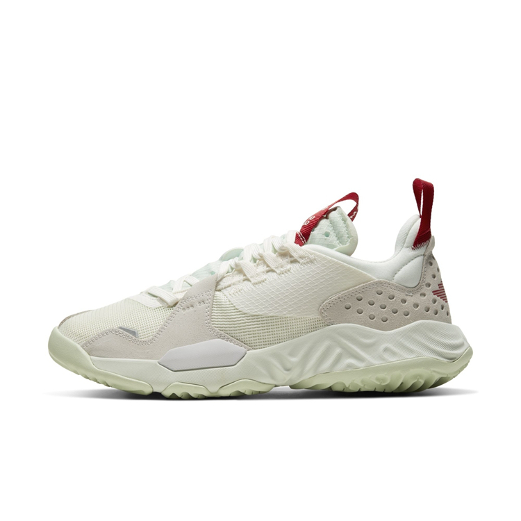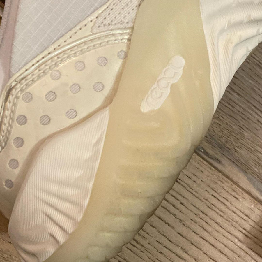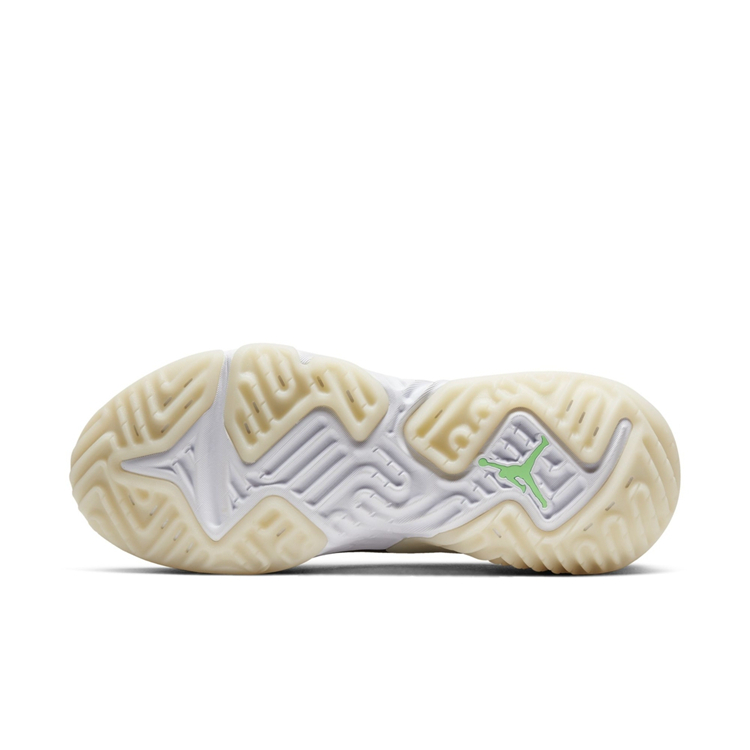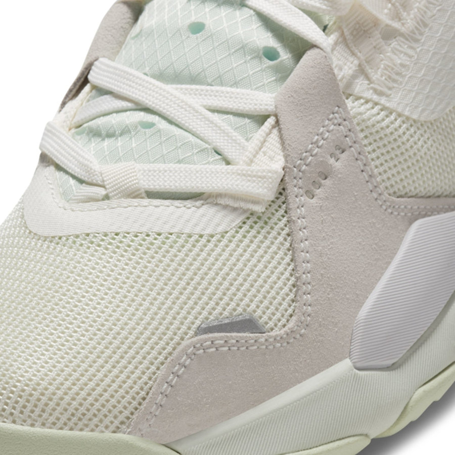 整双鞋香槟色鞋身辅以类似 Air Jordan 11 的果冻外底呈现。鞋面采用类似蝉翼材质覆盖,前端加入漆皮包覆。