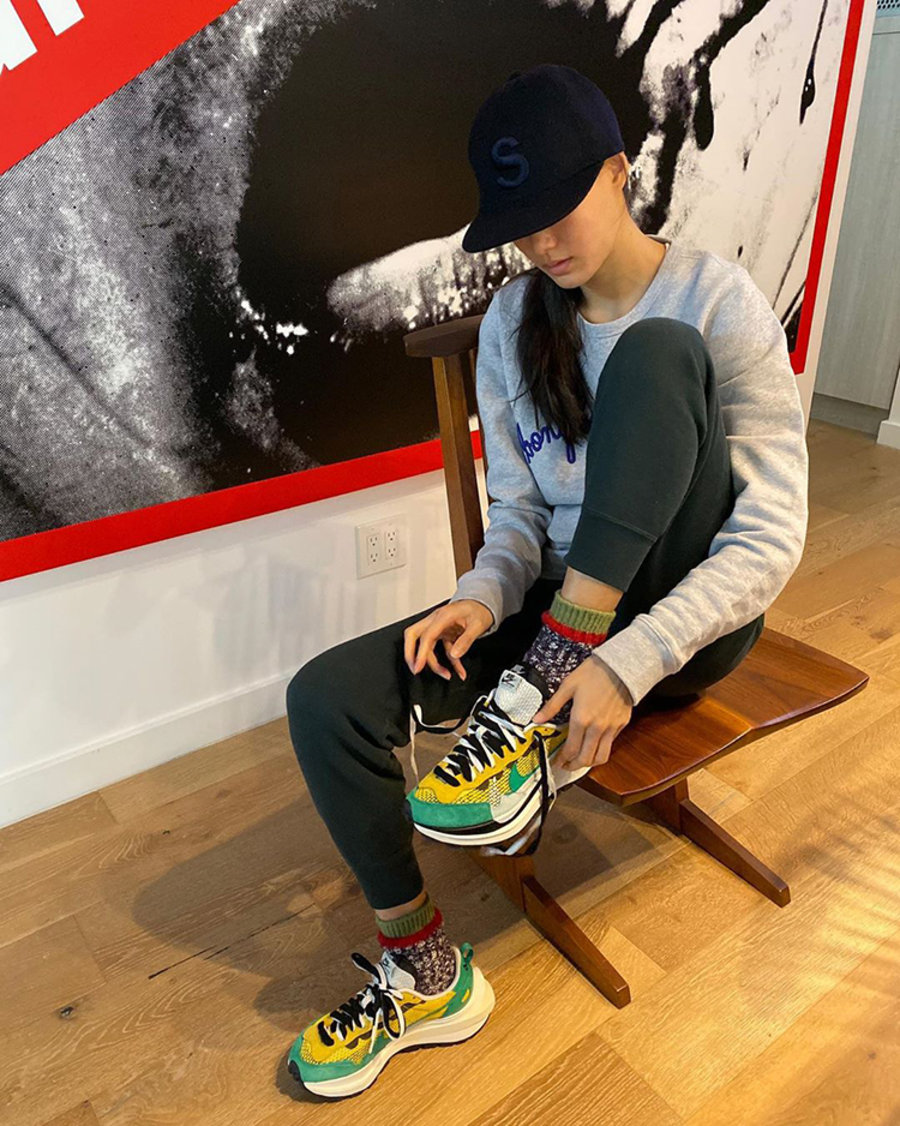 顾名思义,鞋款由 Pegasus 与 VaporFly 两款鞋型的设计元素共同构建,鞋身材质由翻毛皮和透气网布共同打造。熟悉的解构手法、重叠 Swoosh、双重鞋舌、鞋带以及后跟 SACAI 字体都悉数保留。据悉共将推出三款配色,其中秦舒培已经率先上脚黄绿配色!