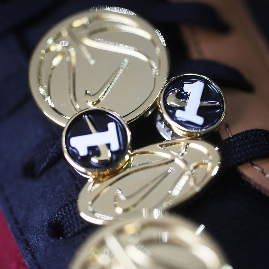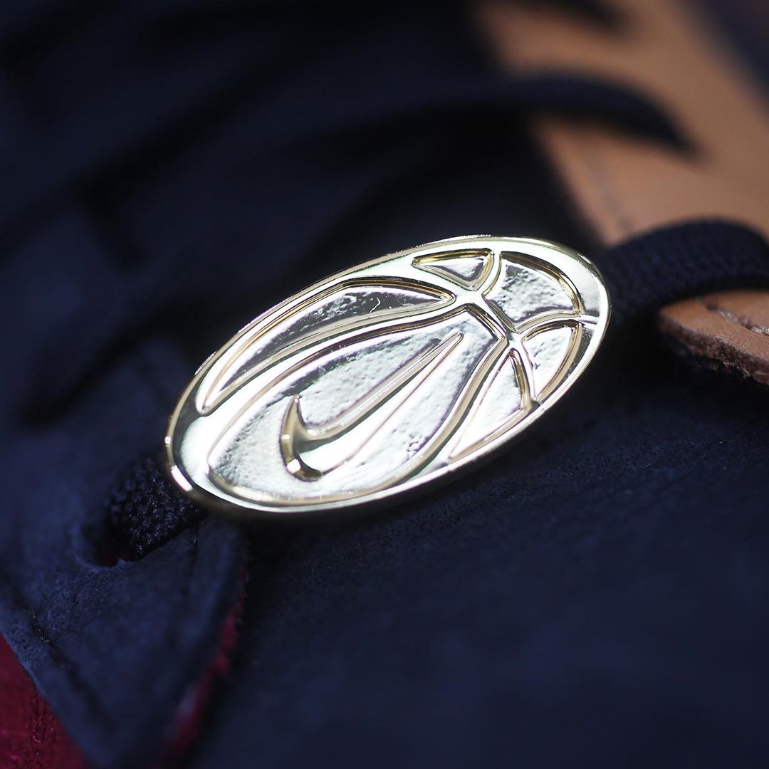 鞋带上串以奖牌样式的 Swoosh Logo 挂件,鞋舌相同样式标签呼应。