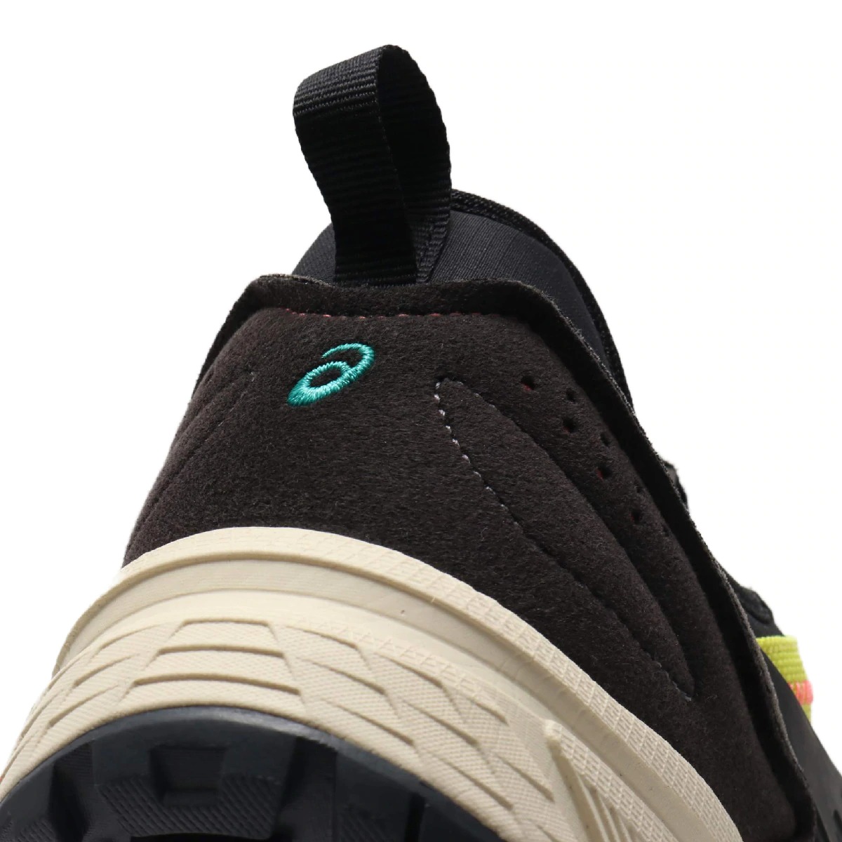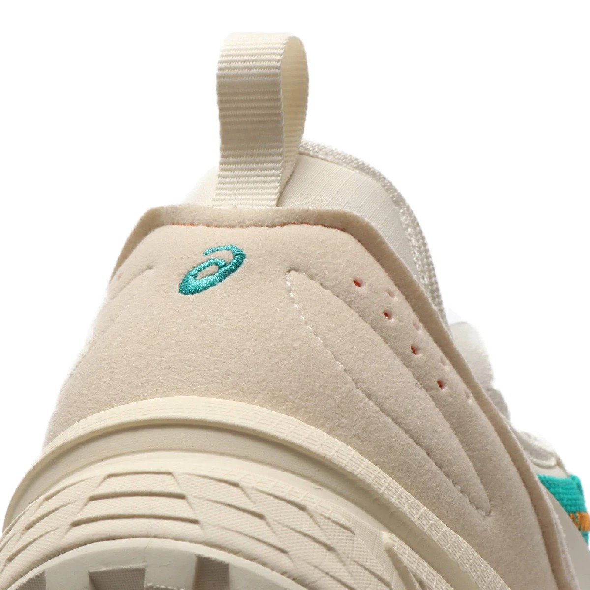 侧身 asics 标志性 Logo 以框架装饰,中底足弓还以撞色搭配,设计风格非常讨巧。